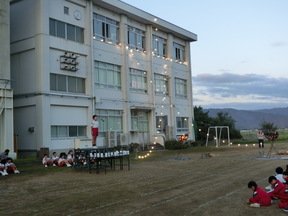 PTAの方々が「文」のイルミネーションを飾ってくれました。
