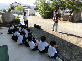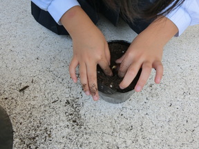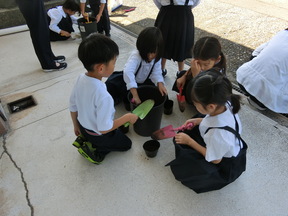 芽が出るのは、来年の春頃だそうです。1年生のみなさんには、これから水やりなどのお世話を