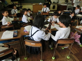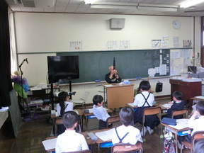 お話をしてくださいました。日本古来の楽器にふれたり、音色を聞いたり