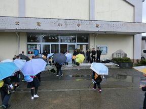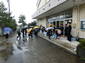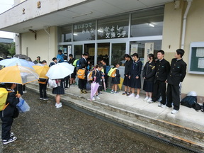 あいにくの雨でしたが、中学生の元気なあいさつのおかげで、小学生も元気にあいさつを