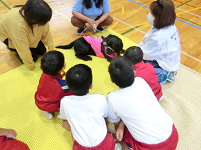 交流をしました。はじめは犬を怖がっていた子も、セラピー犬の