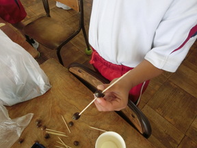 自分が集めてきたドングリや松ぼっくりを使って、楽しいおもちゃを