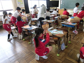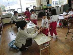 1年生は生活科で、「秋のおもちゃづくり」をしていました。