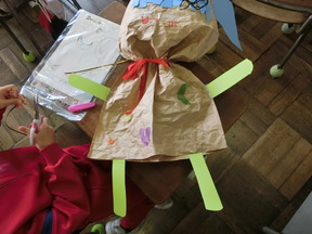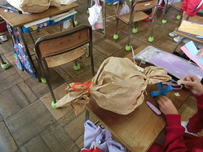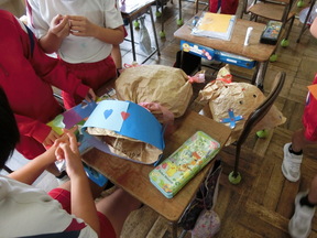2年生は図工の「くしゃくしゃぎゅっ」で、自分なりに考えたキャラクターなどを