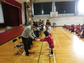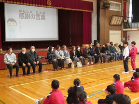 児童代表による感謝の言葉 児童手作りのプレゼントを渡しました。