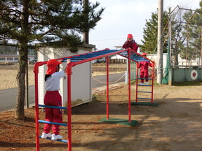 つかの間の晴れ間に、子どもたちはしっかり校庭で外遊びを楽しんでいました。