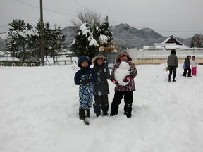 校庭で雪遊びをしていました。