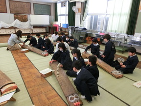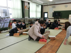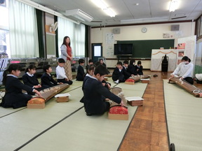 部活で箏をしていた本校教員が講師として箏の仕組みを伝えたり、