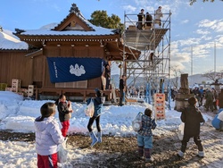 毎年2/9に文殊地区の上細江町にある粟嶋神社で、恒例の「だんごまき」が