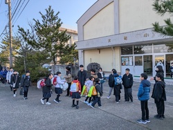 昨日卒業式を終えたばかりの6年生が、朝の登校時間に合わせて