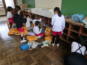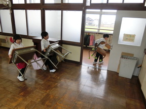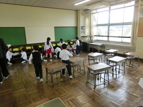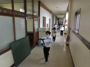 1年生も自分たちで、荷物や机・椅子を2年生教室へ運びました。