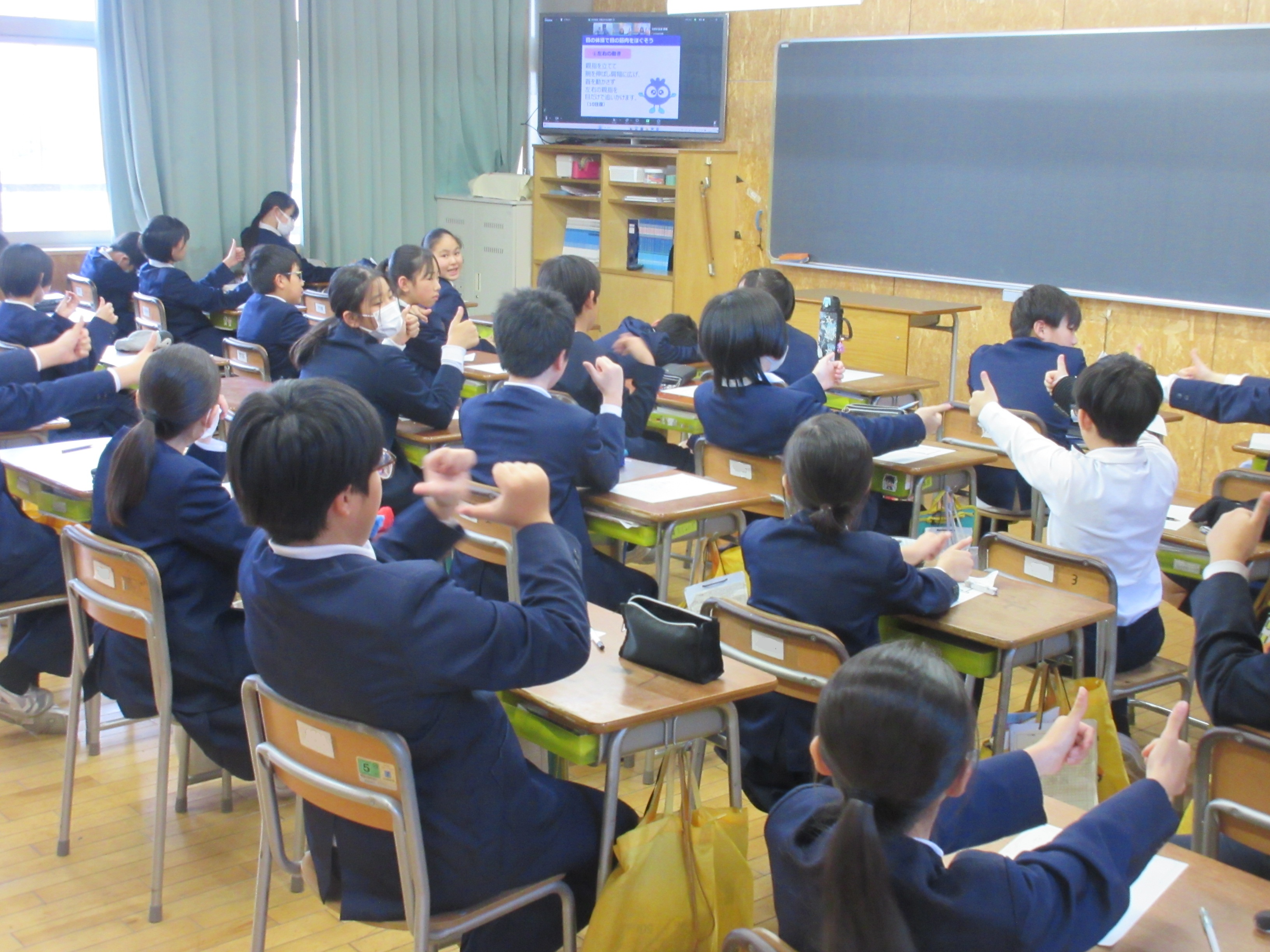 | 教育ウィークでの授業参観1日目でした。たくさんの保護者の方々に児童の様子を見ていただきました。学級担任ではなく教科担任との授業をみていただいた学級もありました。2年 |