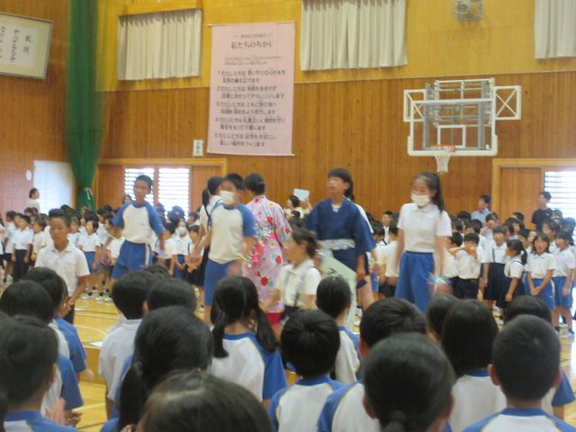 | 39日間の夏季休業を終えて、児童が学校に戻ってきました。生活のリズムが本調子でないのか、挨拶のテンションは低めに感じました。だからこそ、なおさら元気な挨拶・ふたこと |