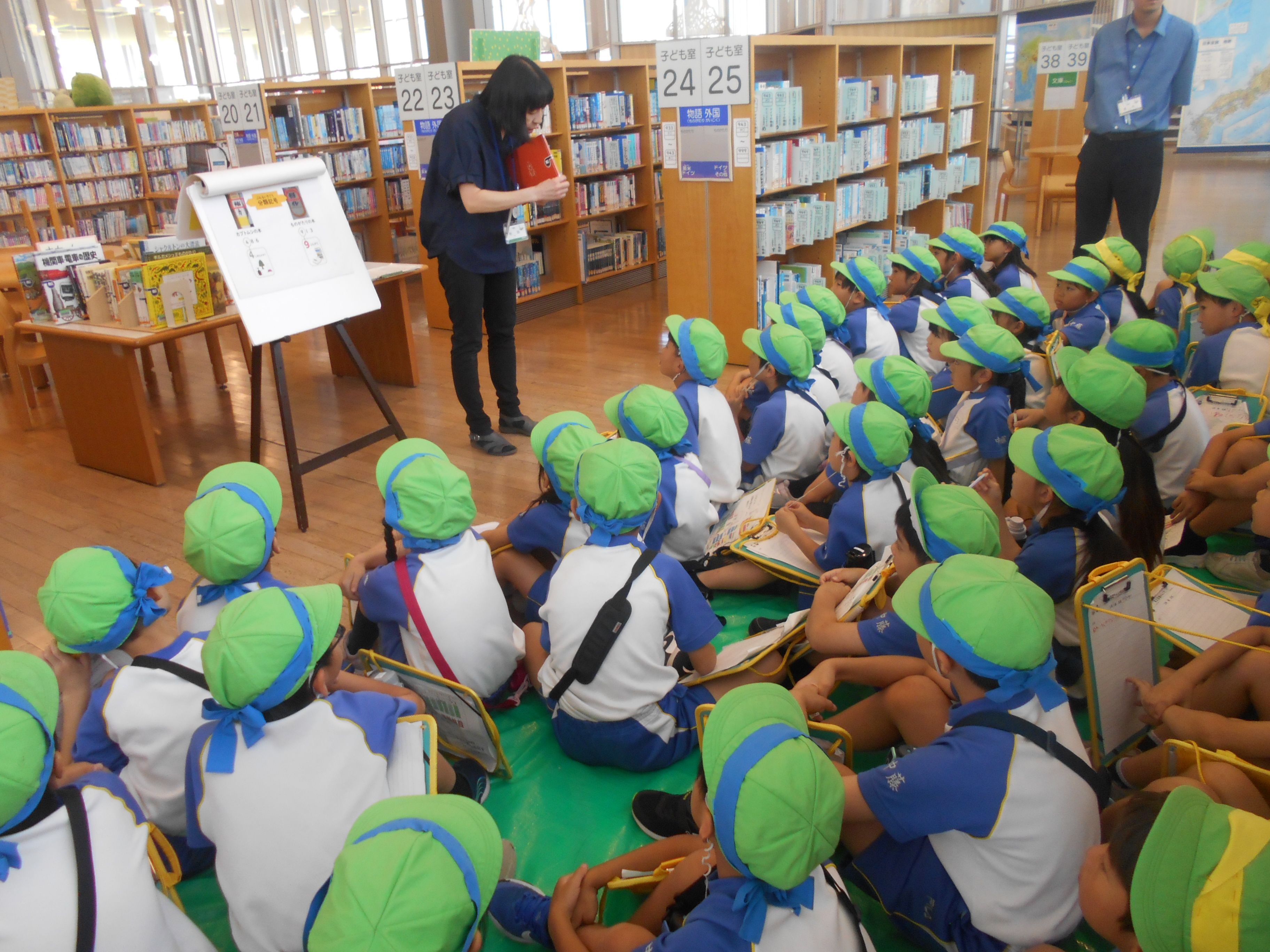 2年生が校外学習で県立図書館に出かけました。探偵団という活動では、本の分るいや図書かんのルールなどについて教えていただいた後、「地図づくり」と「本さがし」のミッションにチャレンジしました。図書館見学では、図書館の中を案内していただき、仕事の様子を見学しました。読み聞かせでは、司書の方から、おすすめの本を読んでいただきました。