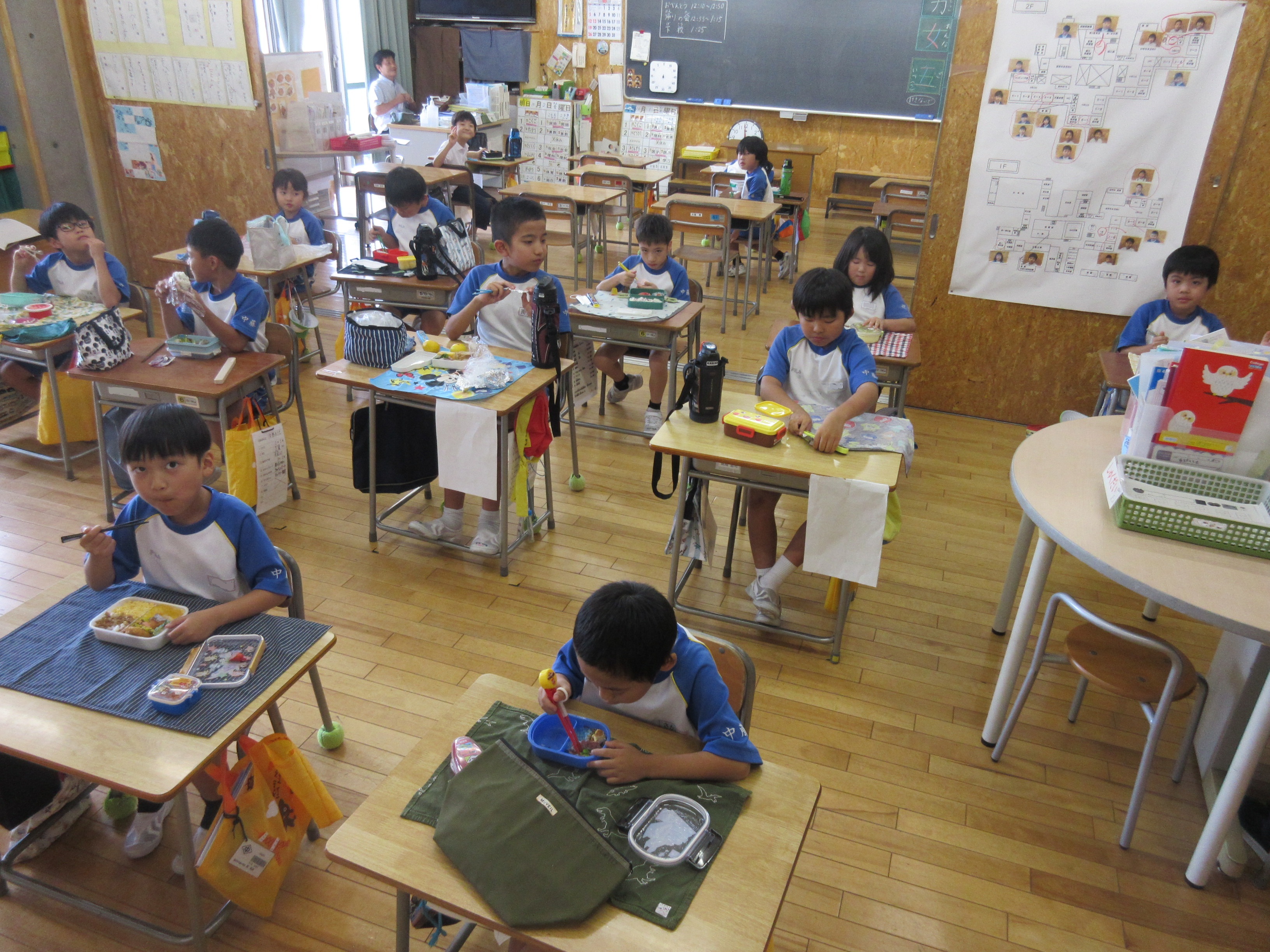 校内体育大会が順延になったこともあり、校舎内は割とひっそりとし、児童も落ち着いた態度で午前中の授業を過ごしていました。そして、昼食時には手作り弁当をおいしそうに頬張っていました。