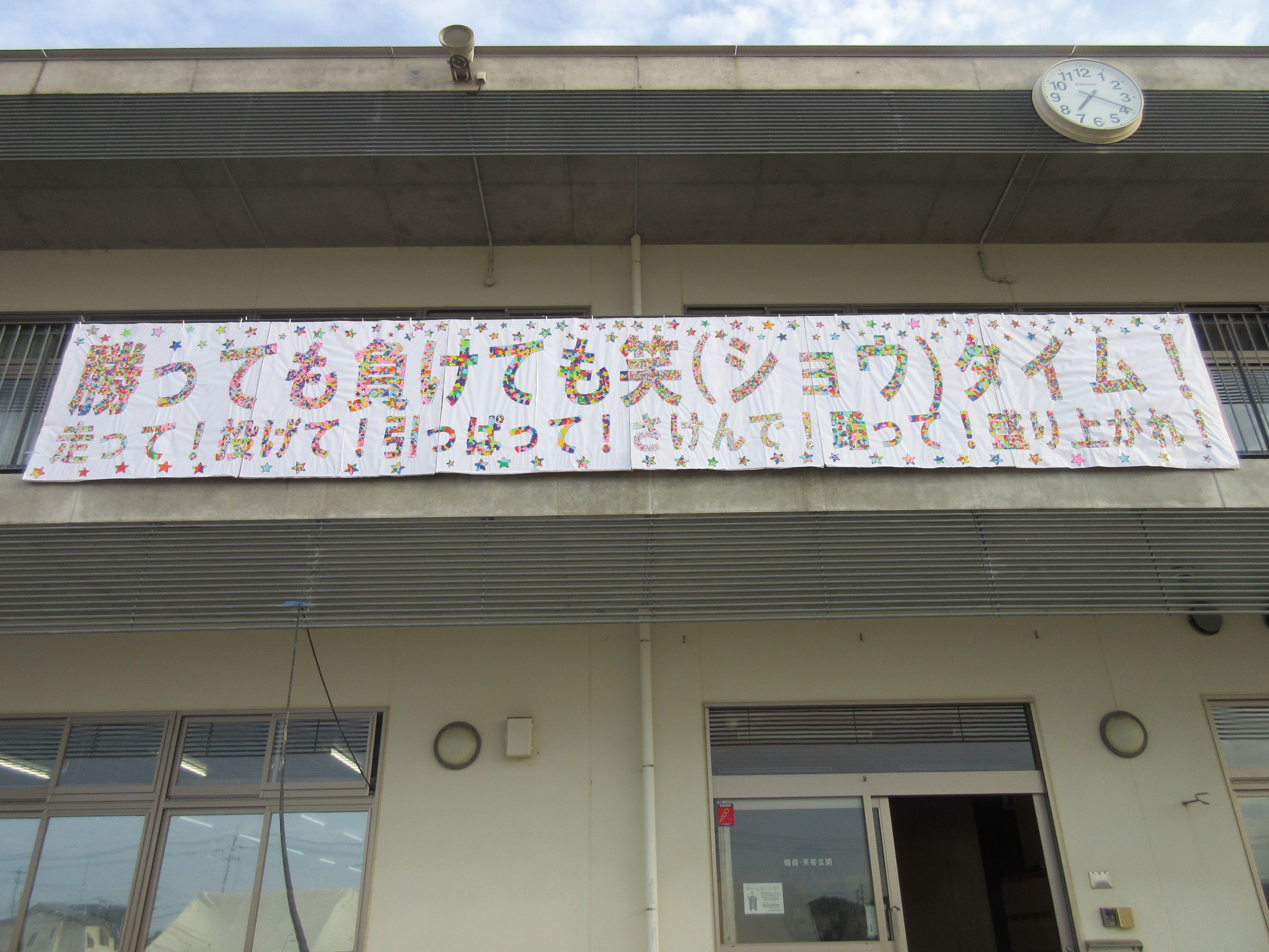 総合優勝は赤組でしたが、どの色組も惜しかったです。閉会式では、大会後は、勝ったもの威張らず、負けたもの僻まず、お互いを褒め合う習慣「ノーサイド」について話をしました。
