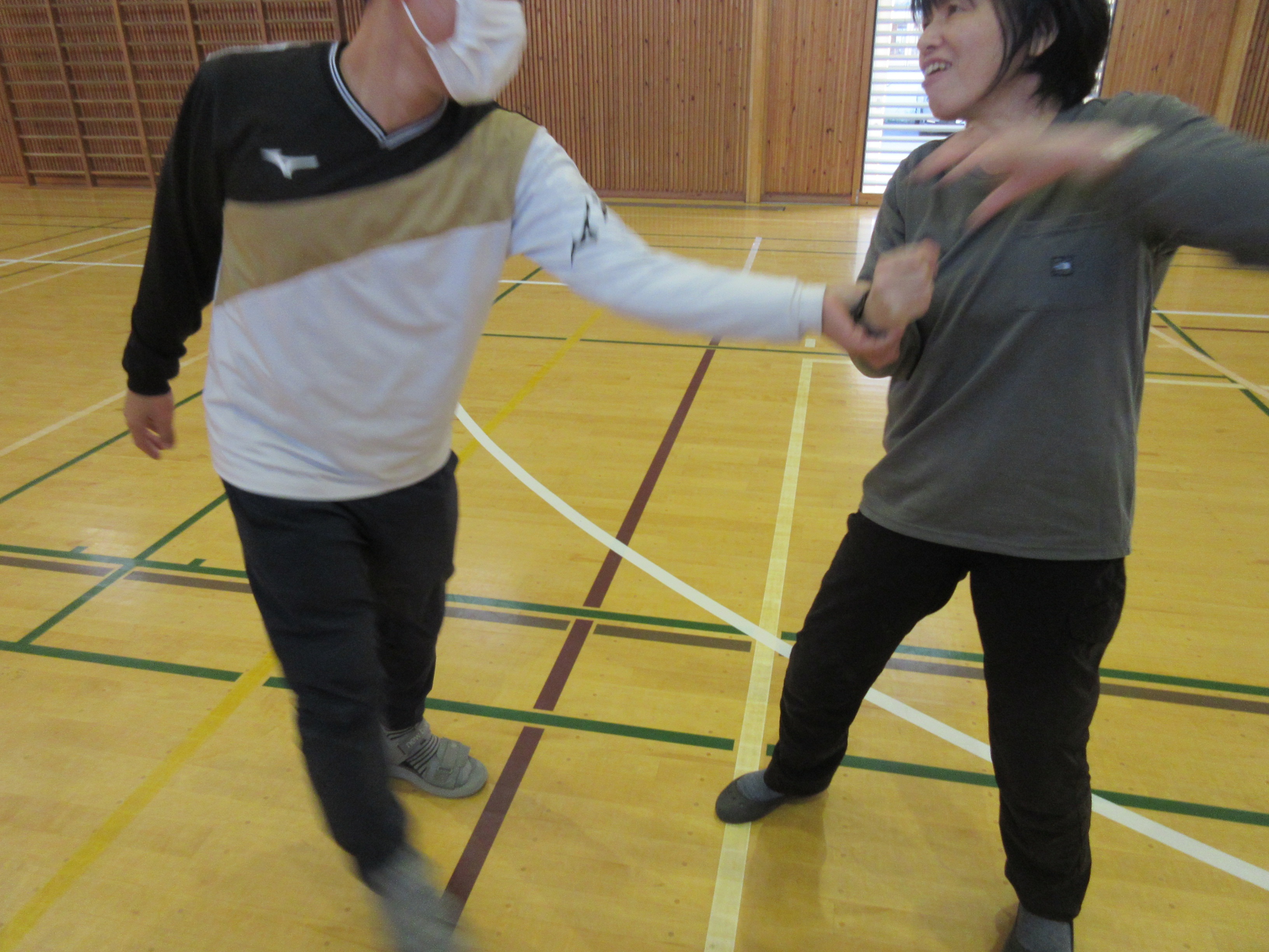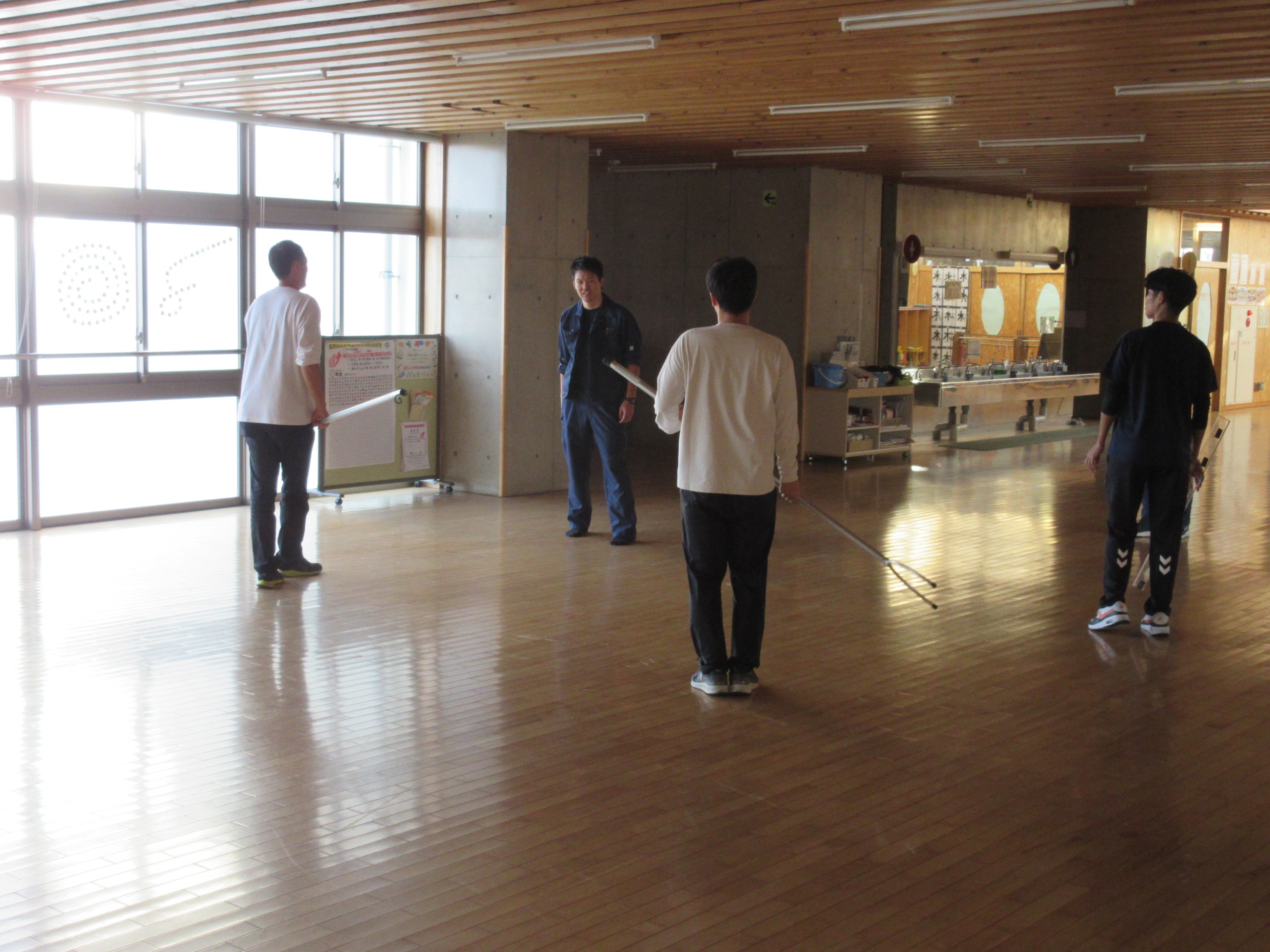 放課後、福井警察署の協力を得て、教職員対象に不審者対応訓練を行いました。不審者役の署員が校内に侵入し徘徊する過程で、声かけやらさすまたを使った確保訓練や連絡体制の確認を行いました。難しかったのは、来校者と不審者の見極めや対応の切替でした。本番はあっては困りますが、まさかの時にちゃんとした対応がとれるように準備しておきたいと思います。