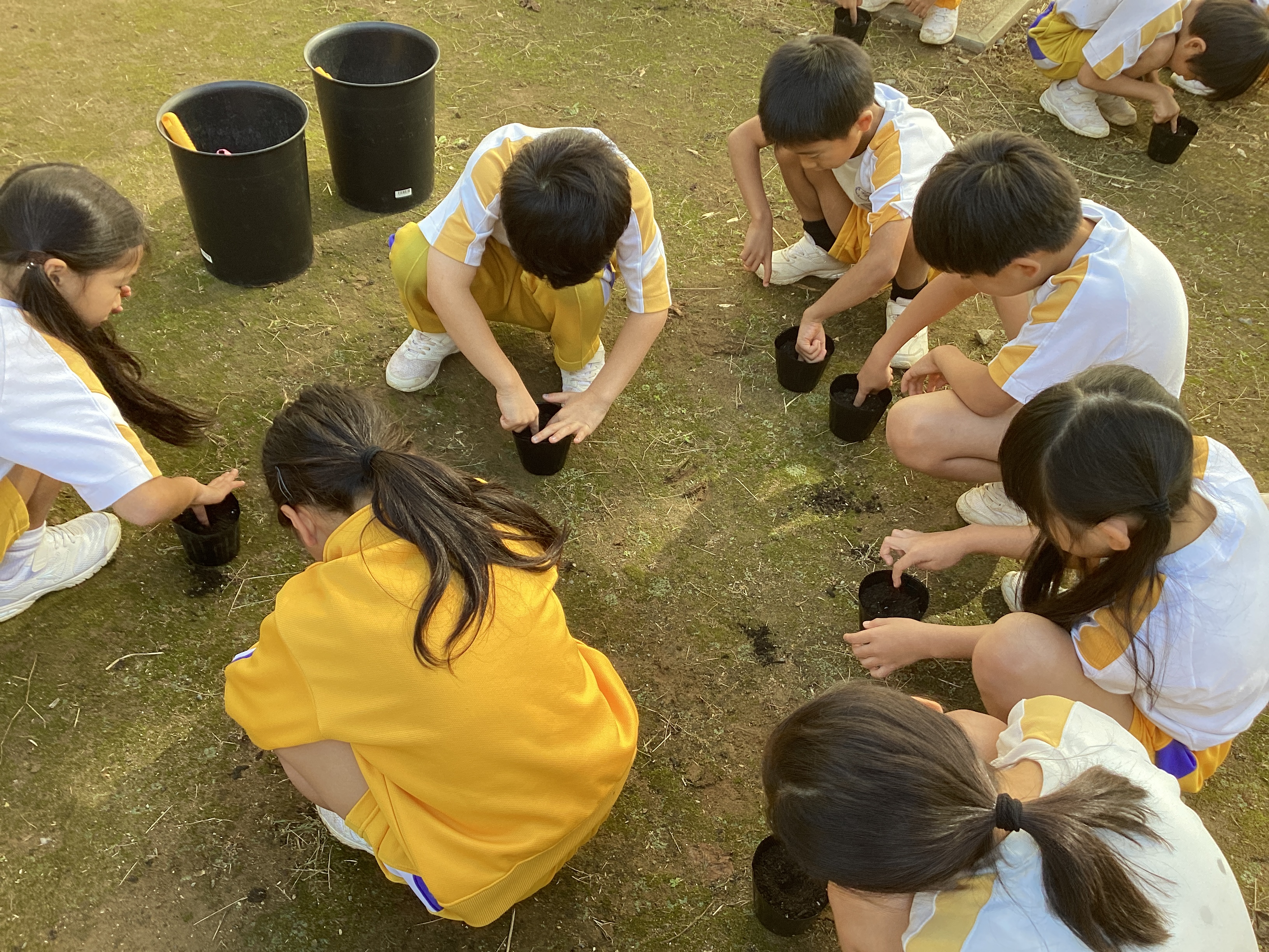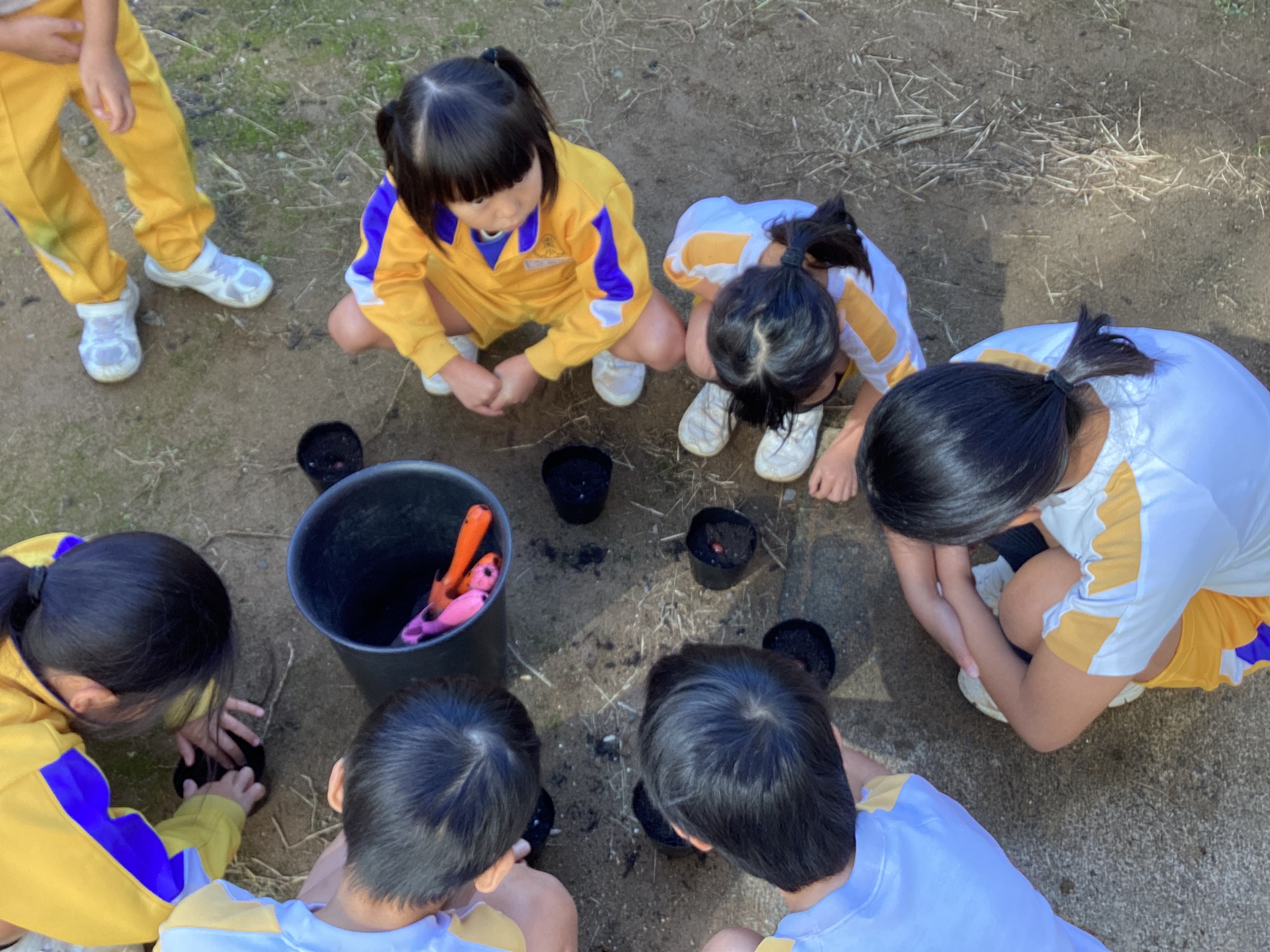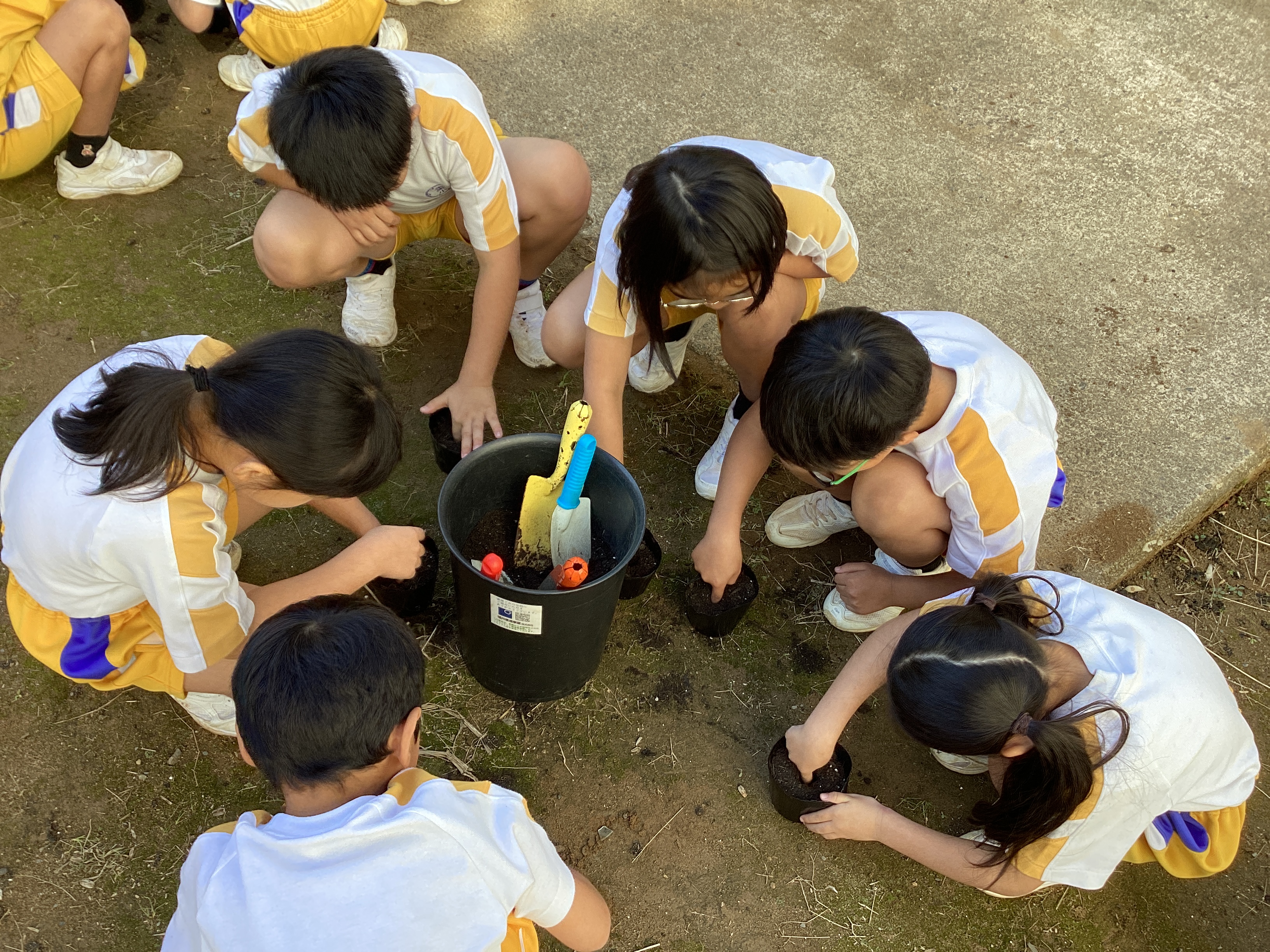 4年生を中心に協力して、丁寧にどんぐりを植えていました。