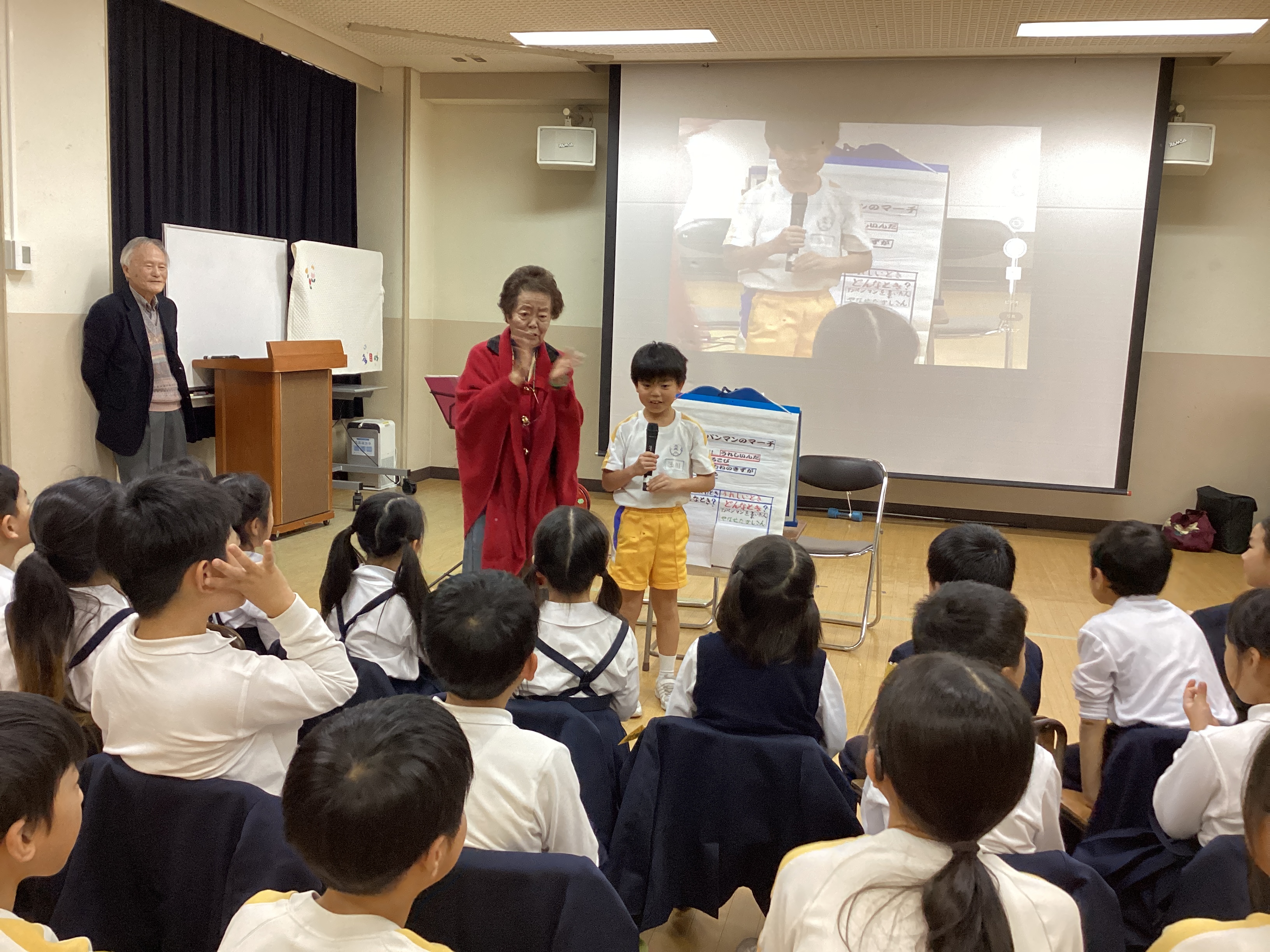 棗小学校区に住まわれている長谷川さんご夫妻にお越しいただき、読み聞かせ会が行われました。