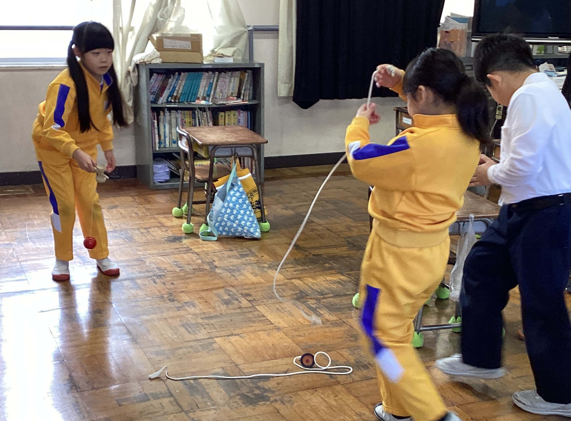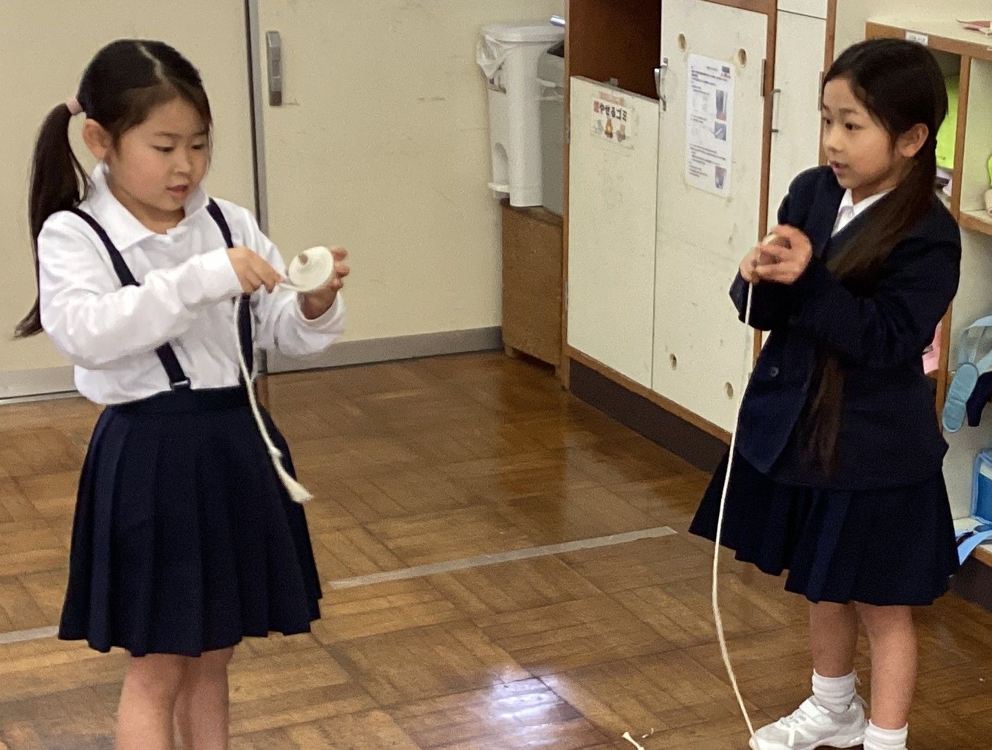 休み時間には、みんなでサッカーをしたり、こま回しやけん玉をして遊んだり!!