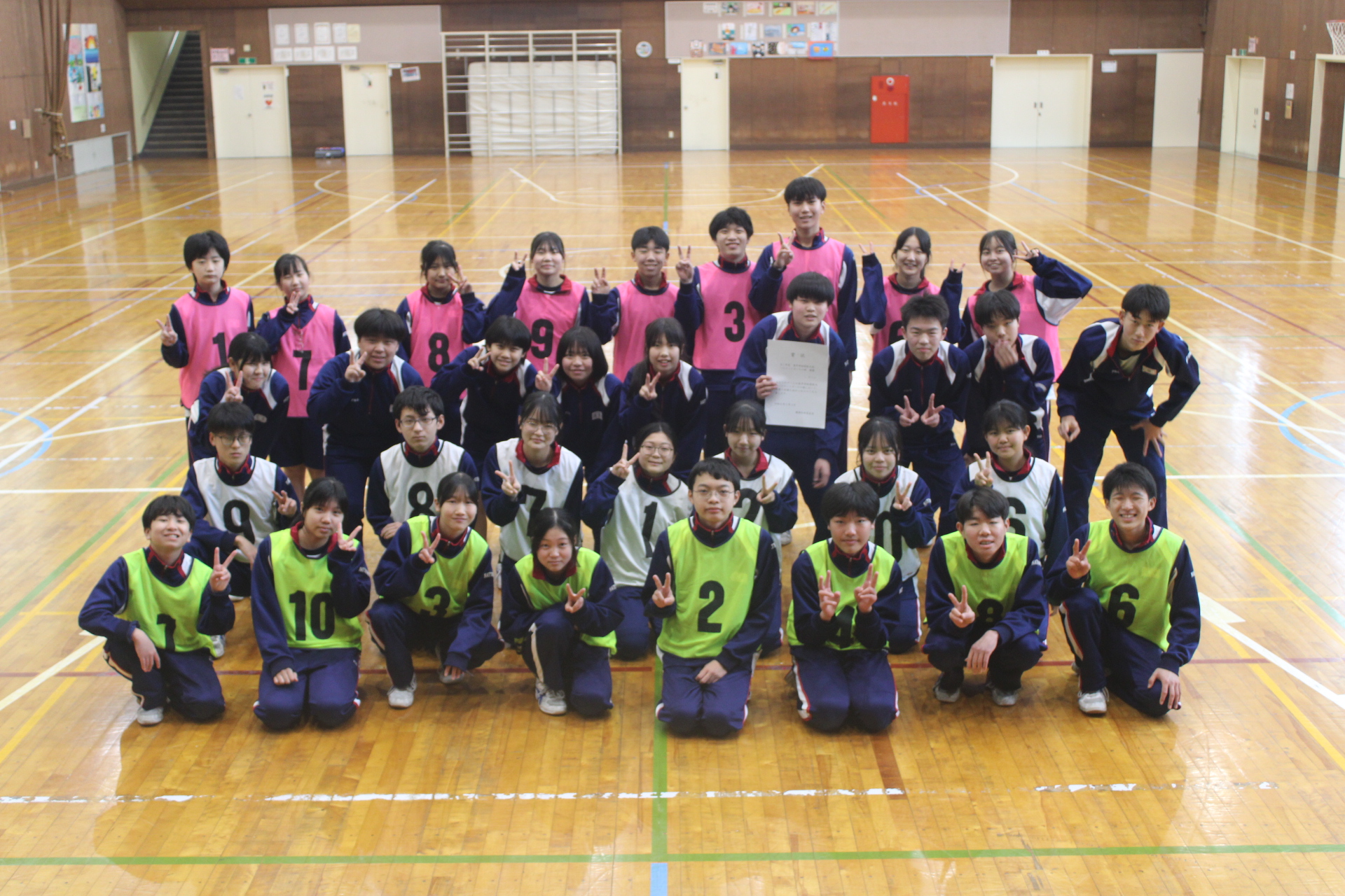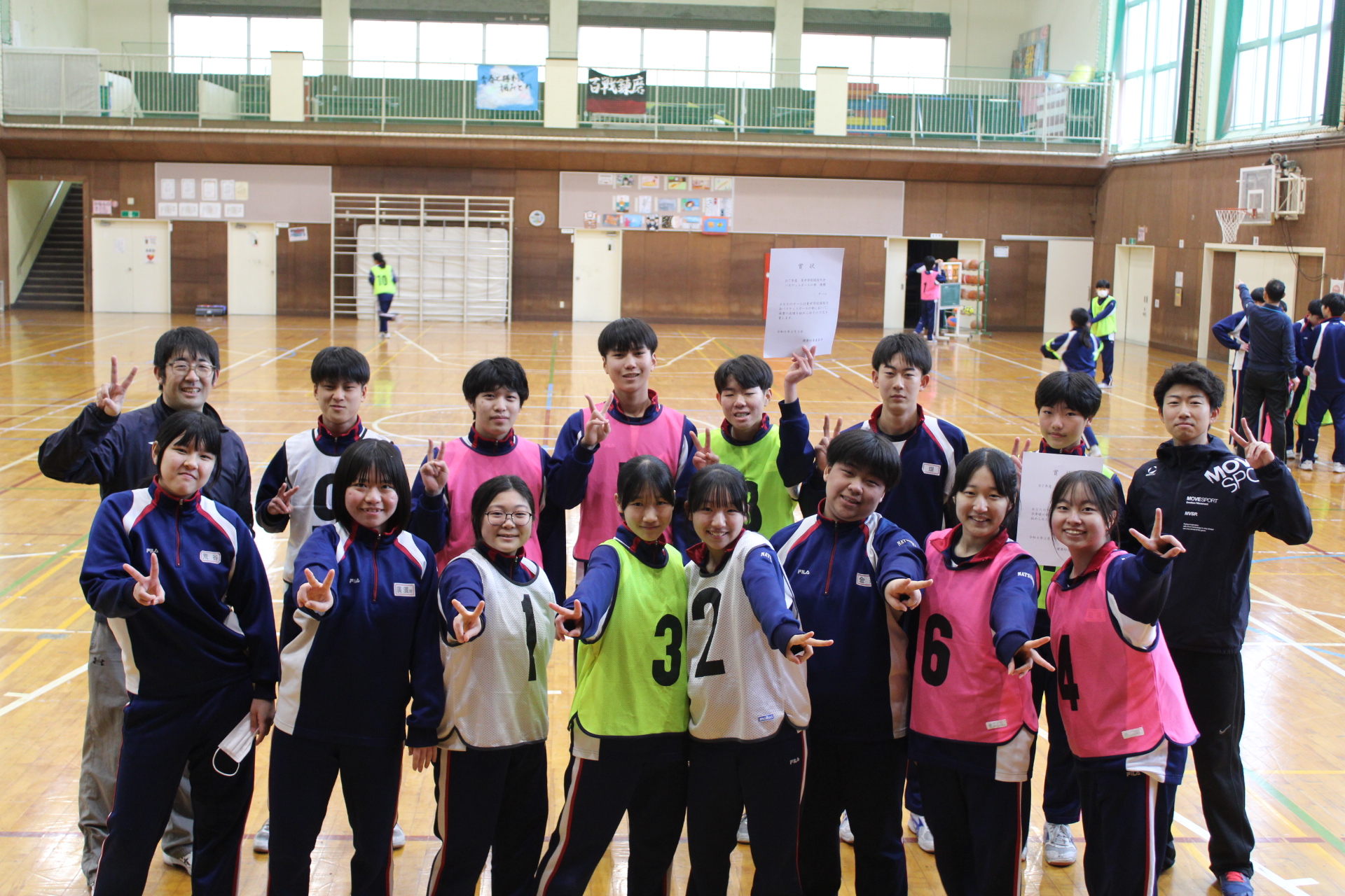 | 2026年がスタートし、校舎に子どもたちの元気な声がもどってきました! 今年もよろしくお願いいたします。 中学校集会の前に女子ソフトテニス部の伝達表彰が行われました。 「福井 |