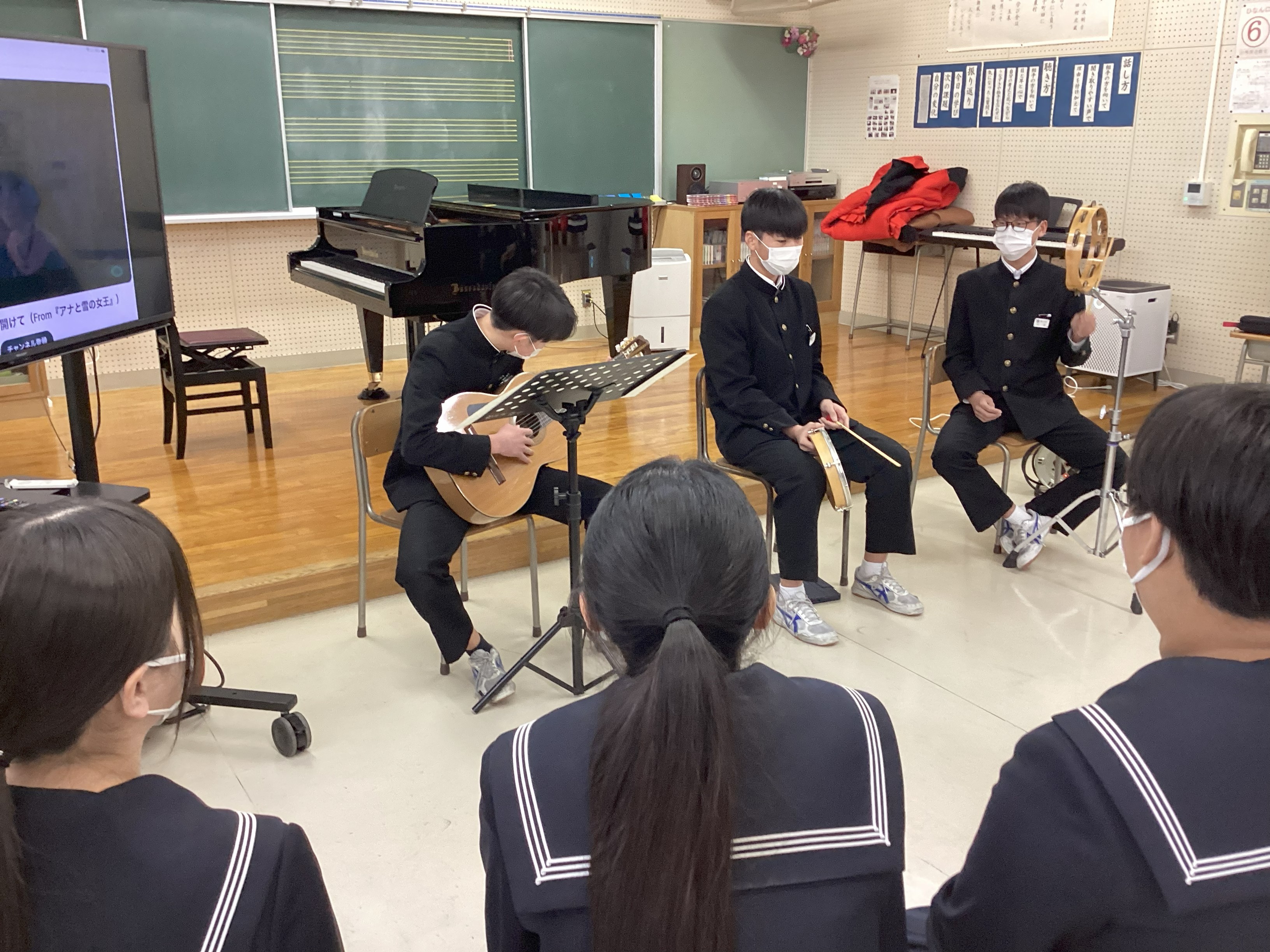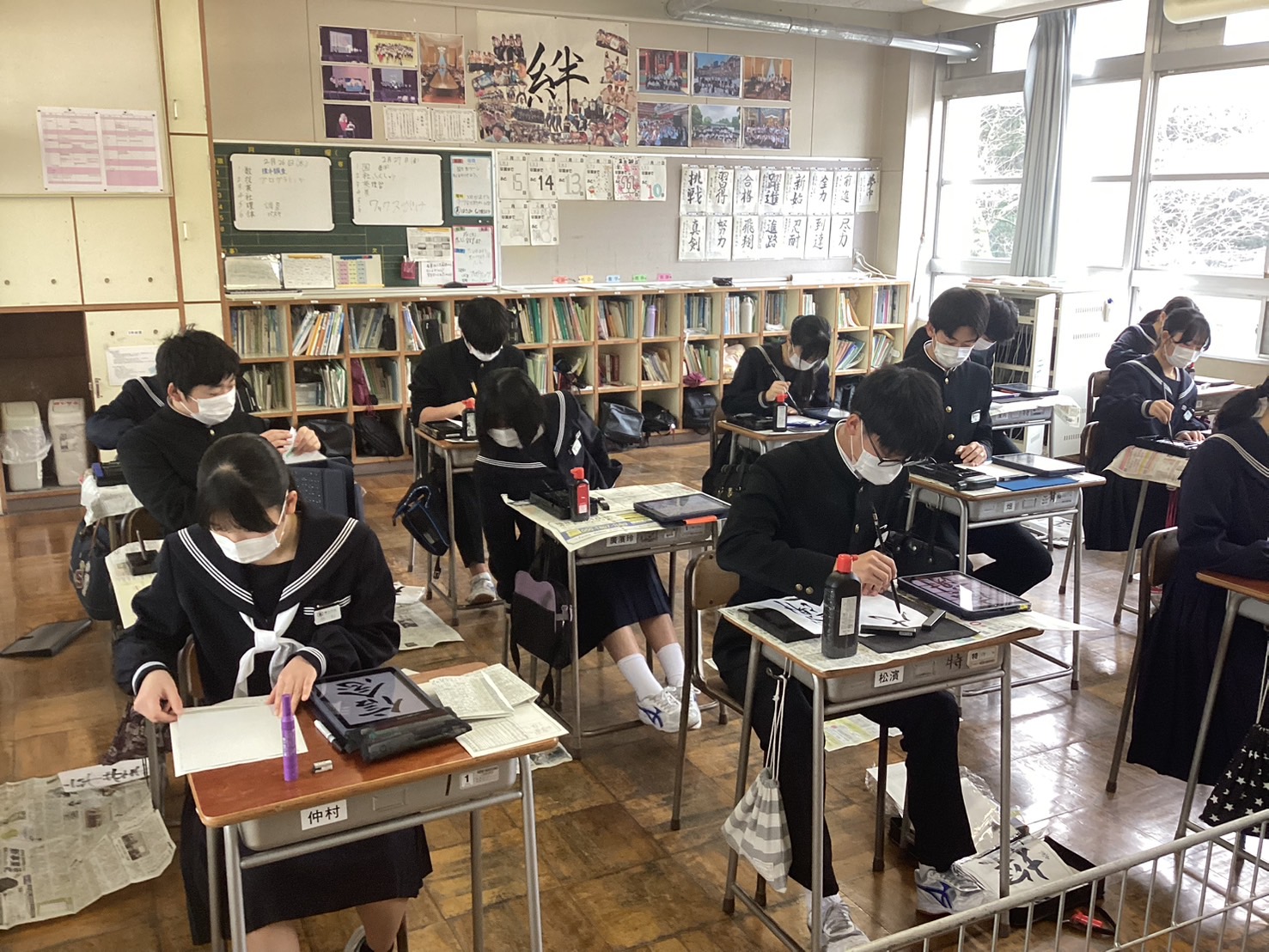 <中学3年生> 書写の授業、音楽の授業も最後です。