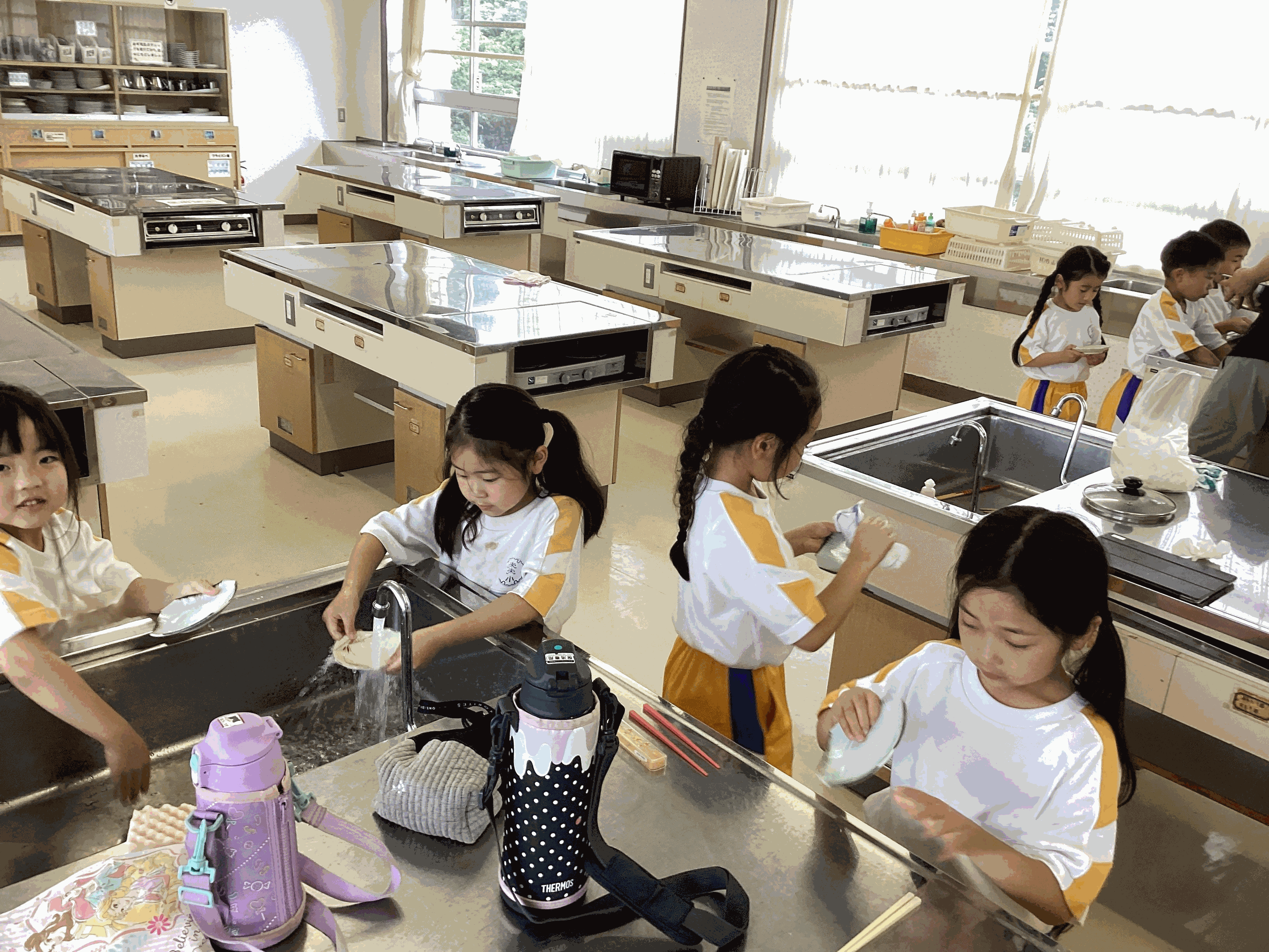 | 今日は子どもたちの日常の風景をお伝えします。 <給食> 2年生は、配膳も自分たちで協力してしています。 [画像:20250523_170257_0.jpg] 1年生。みんなで、まあるく机を向き合わせて給食 |