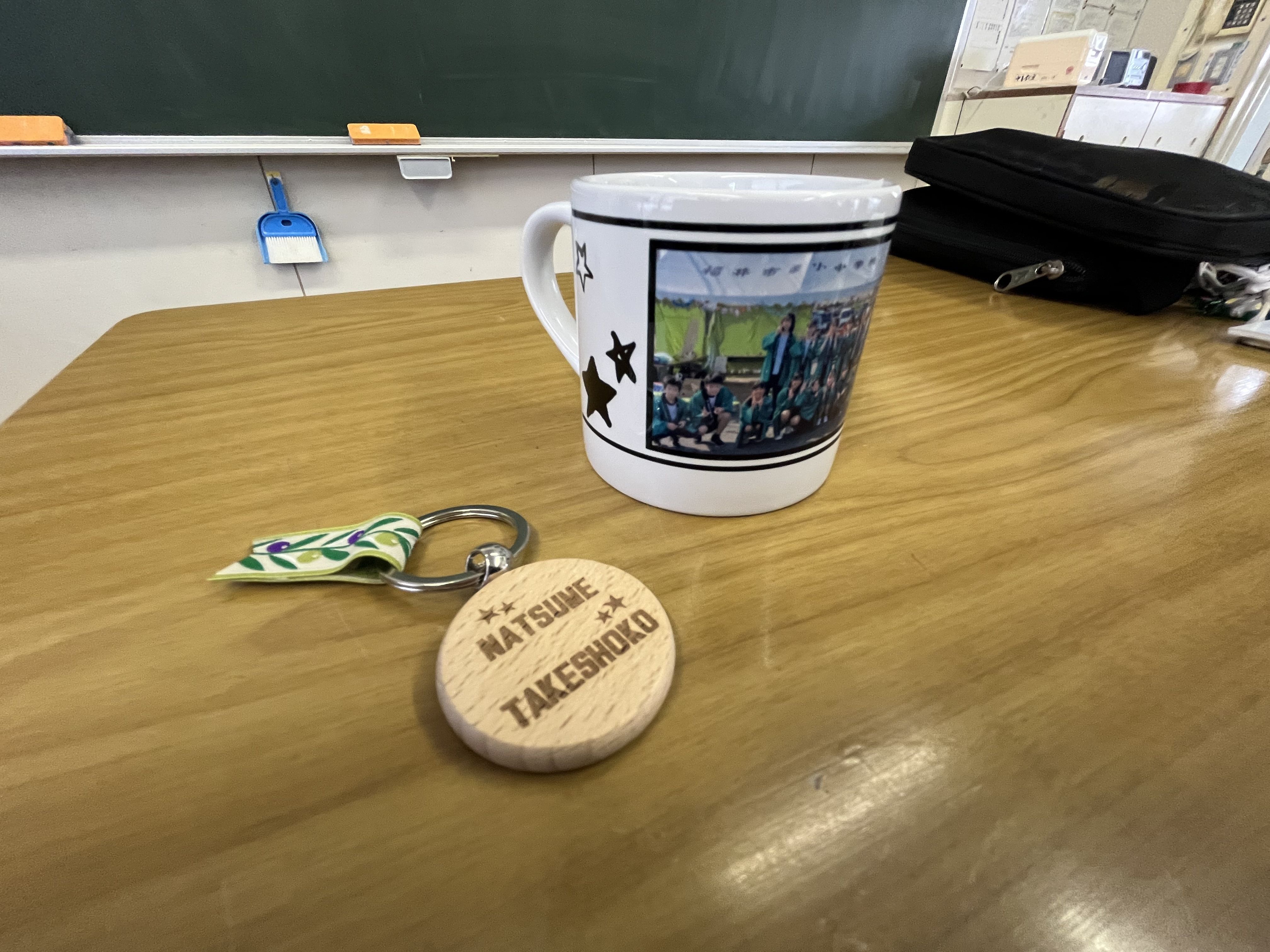 高校生がデザインしたオリジナルのマグカップとキーホルダーです。久しぶりに高校生の方と会って活動を振り返り、