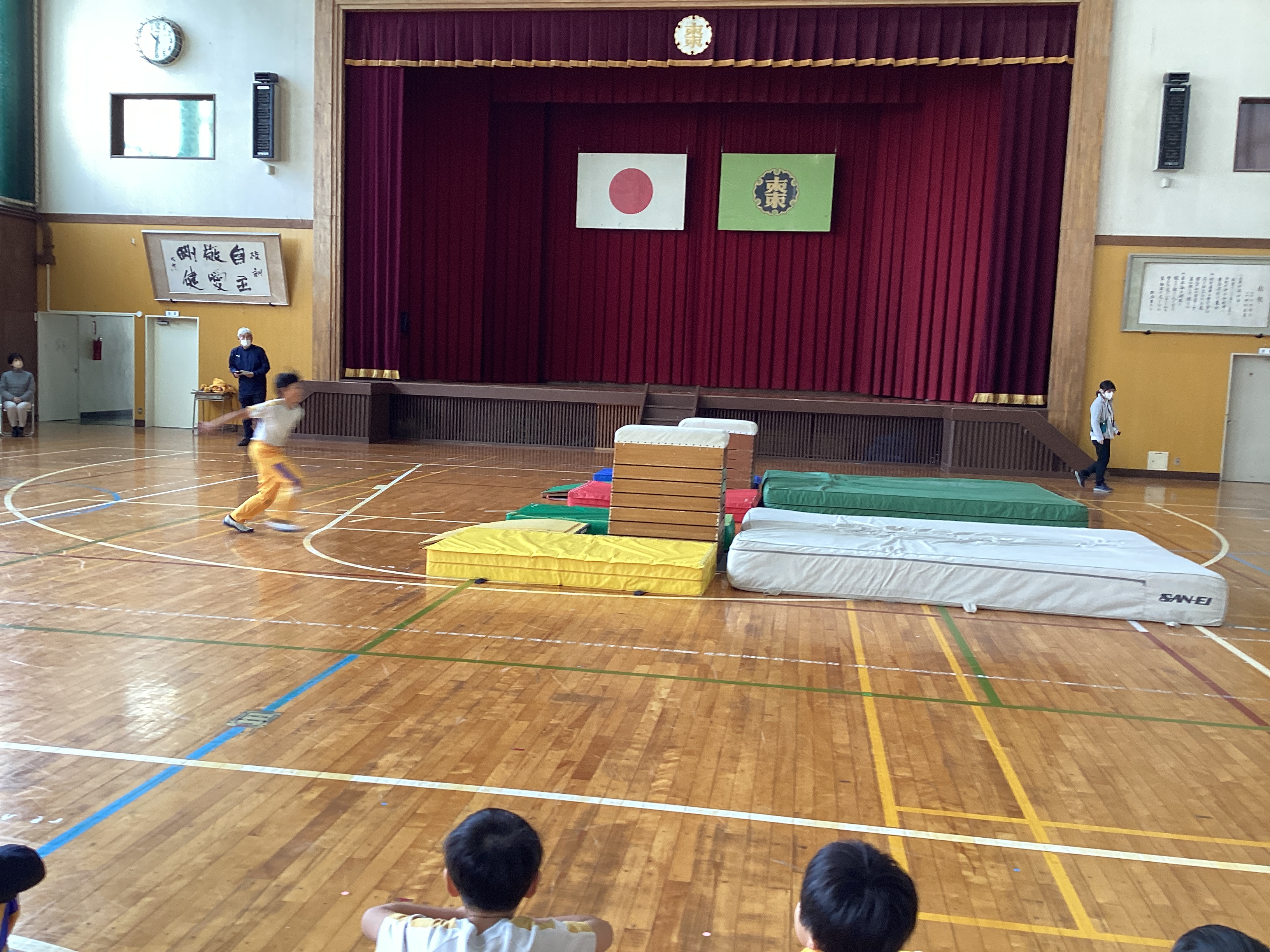 器械運動発表会では、5・6年生が跳び箱・マット・鉄棒の技を披露しました。器械運動が得意な子も、ちょっと苦手な子も、それぞれが自分の力に合わせて挑戦し、技をつないで自分なりの構成を見せてくれました。