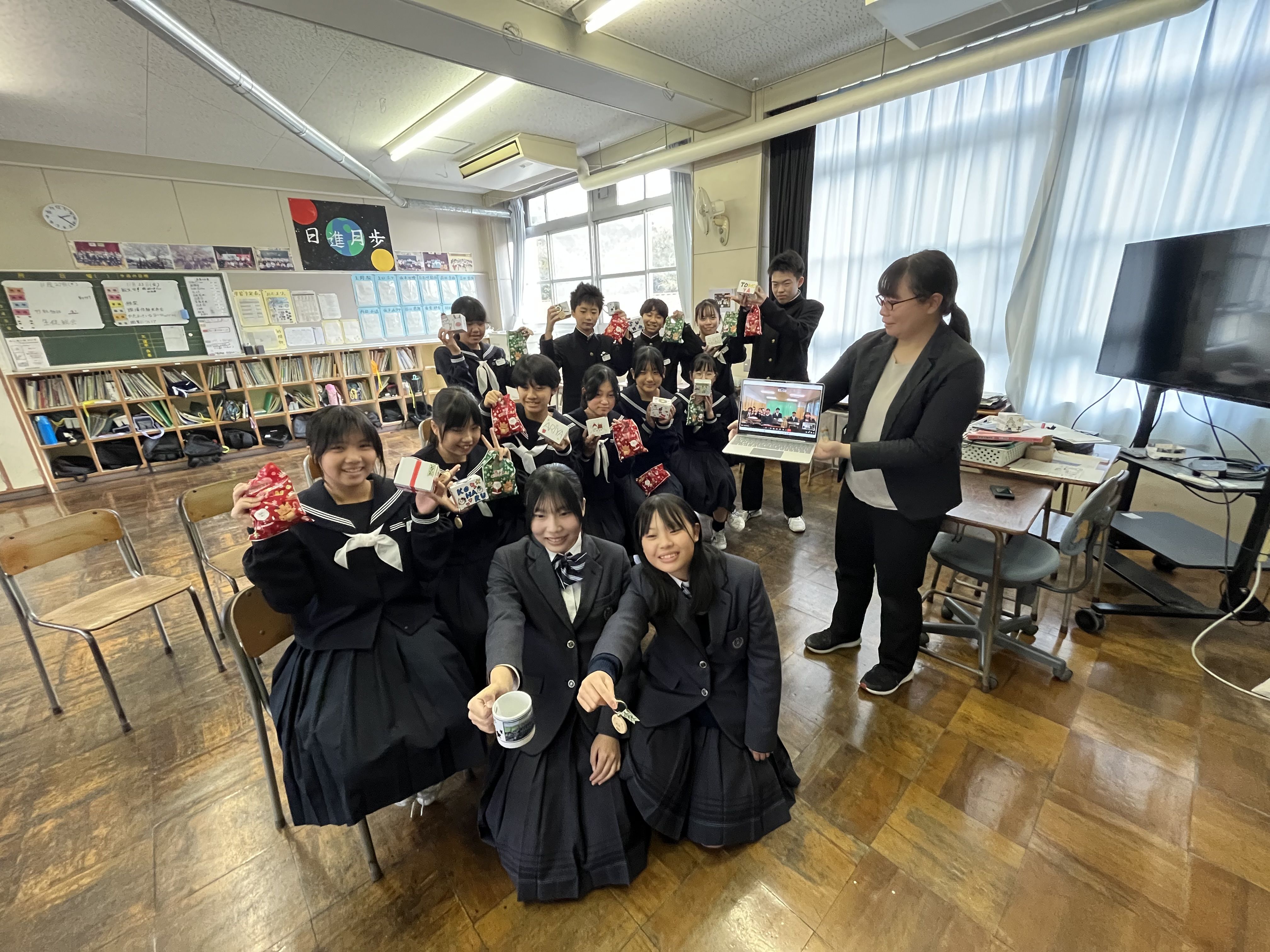 26日(水)棗地区夏祭りに中学1年生と一緒に屋台を出した武生商工校生の2名が本校を訪れ、売上金の一部で作製したグッズの贈呈をしました。