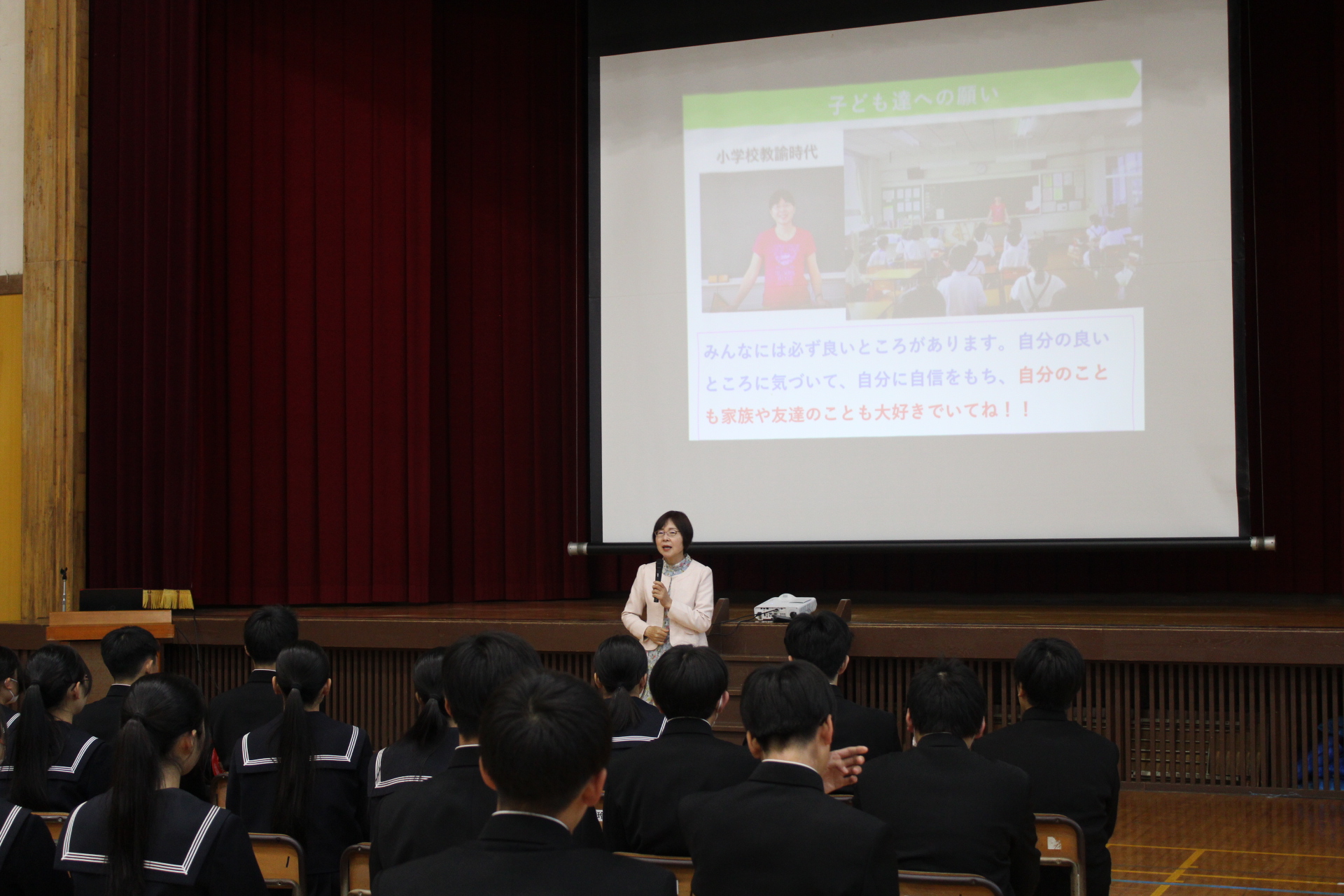 また、講師 岩堀 美雪 様をお迎えし、「みんなに、必ずいいところがある!」というテーマで、小学校・中学校の道徳講演会を行いました。