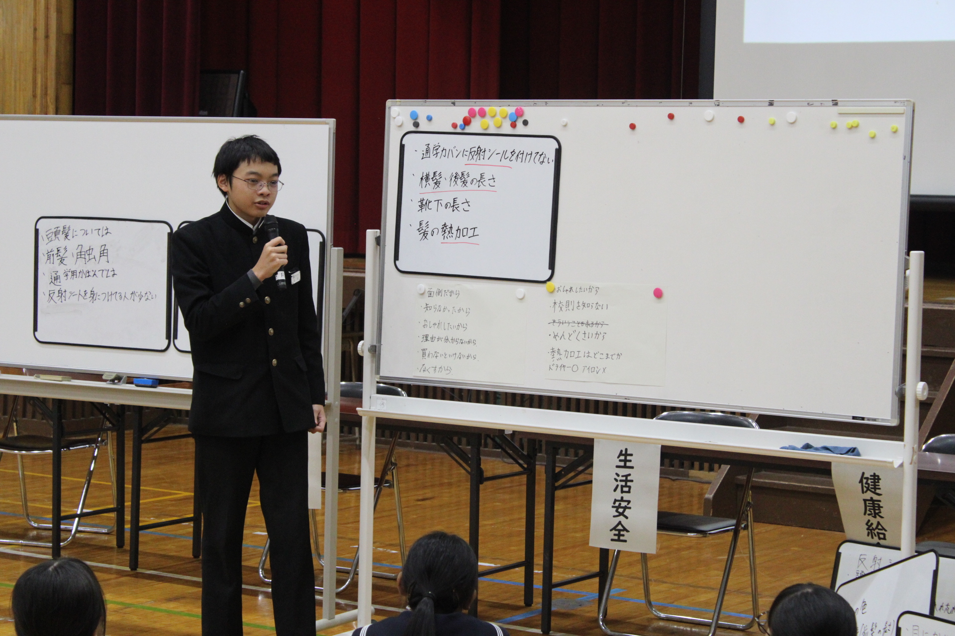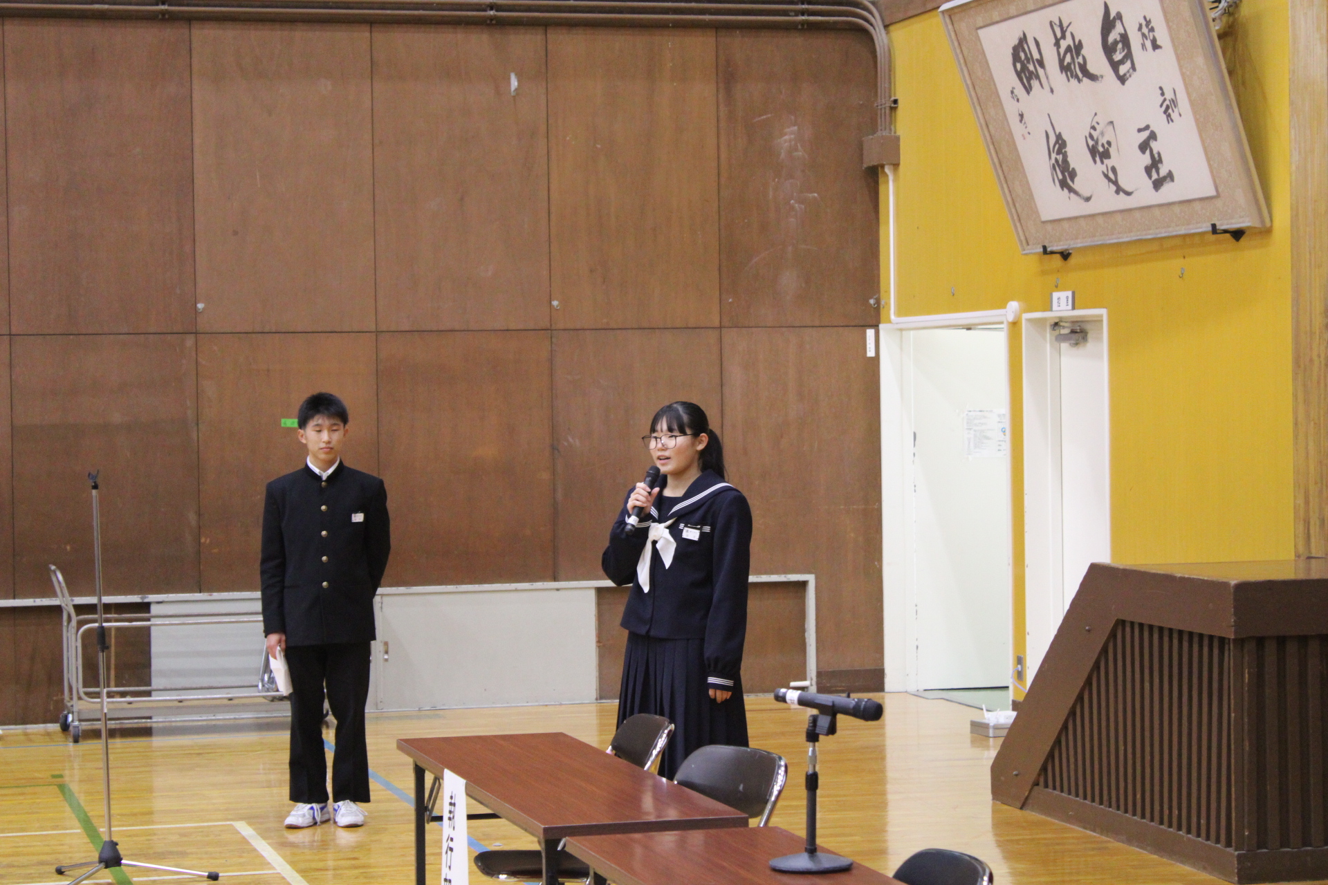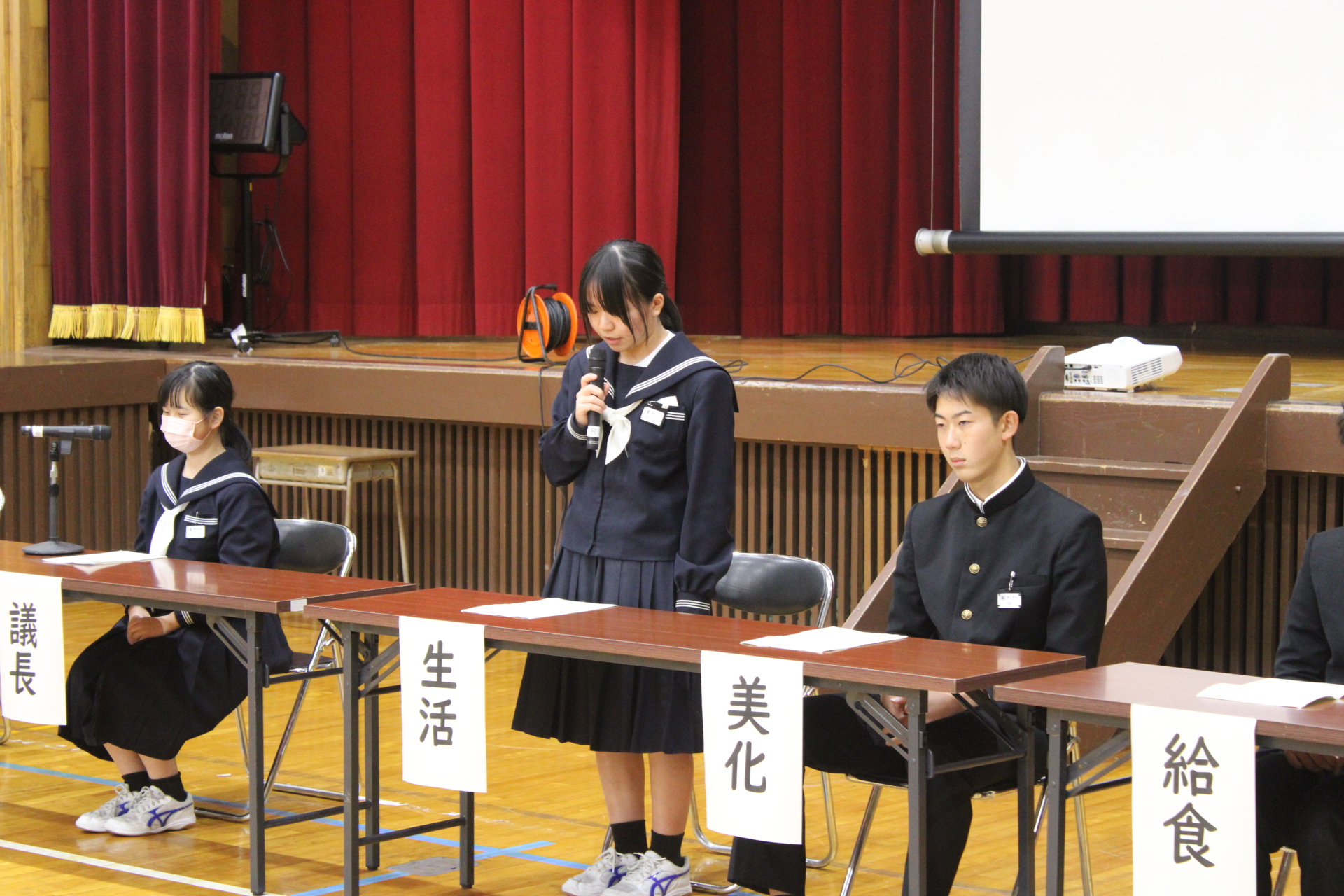 27日(水)中学校の生徒総会がありました。後期生徒会・委員会の活動が説明・質疑応答された他、校則について全校討議が行われました。全校討議では学年が交じったグループで意見を話し合い、子どもたちが校則について再認識する有意義な時間となりました。