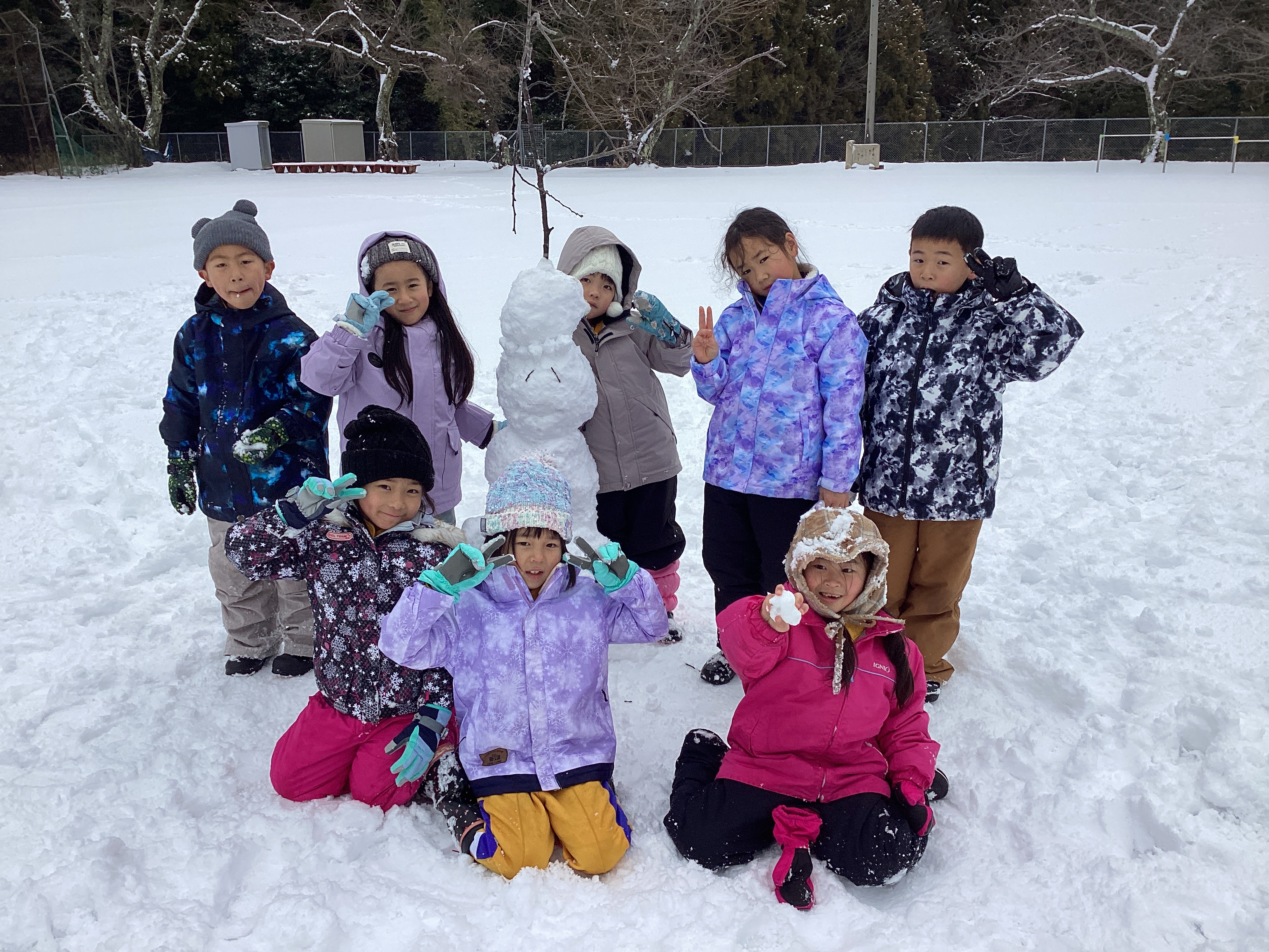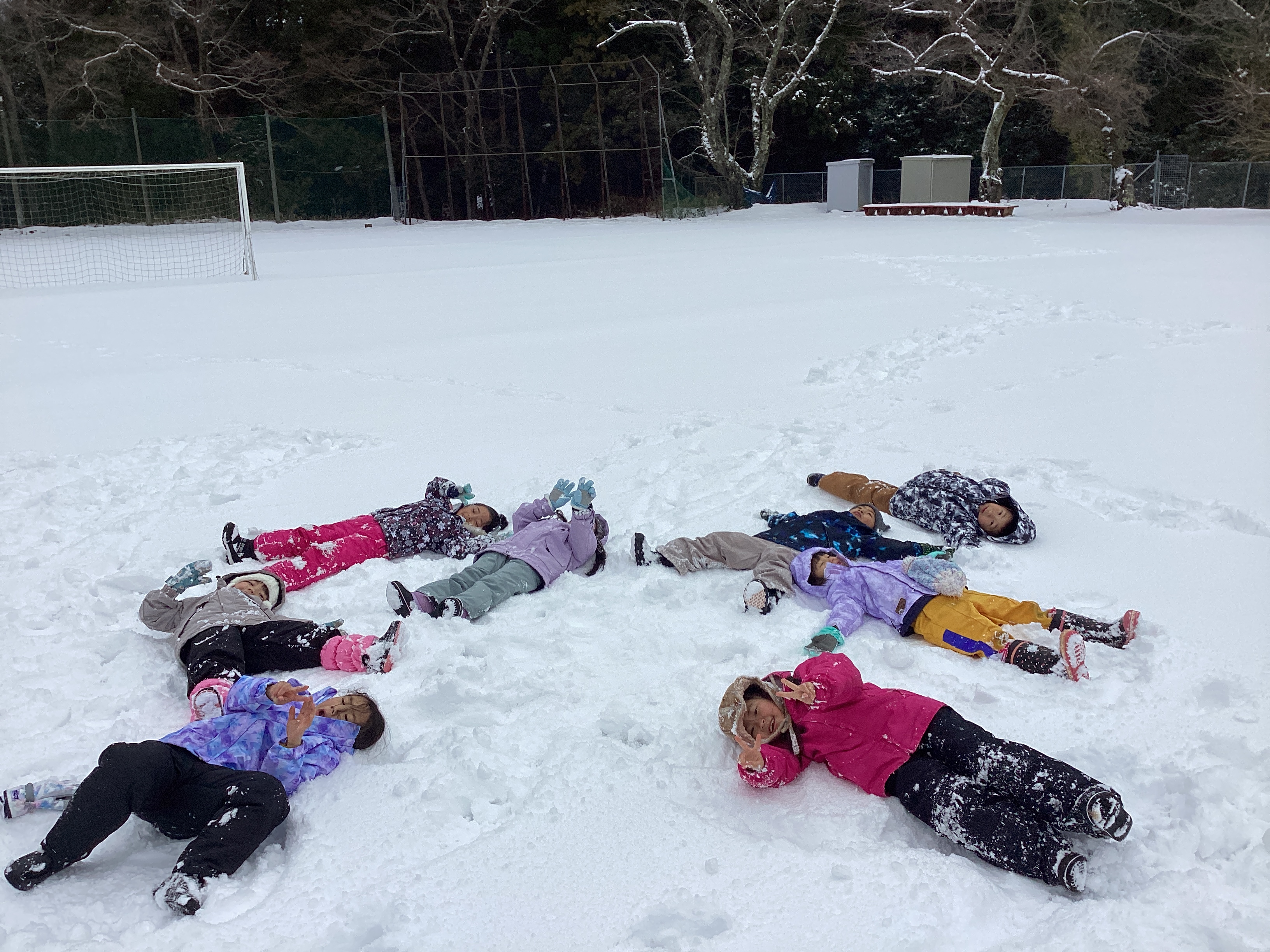 週明け、校庭は雪で真っ白に。