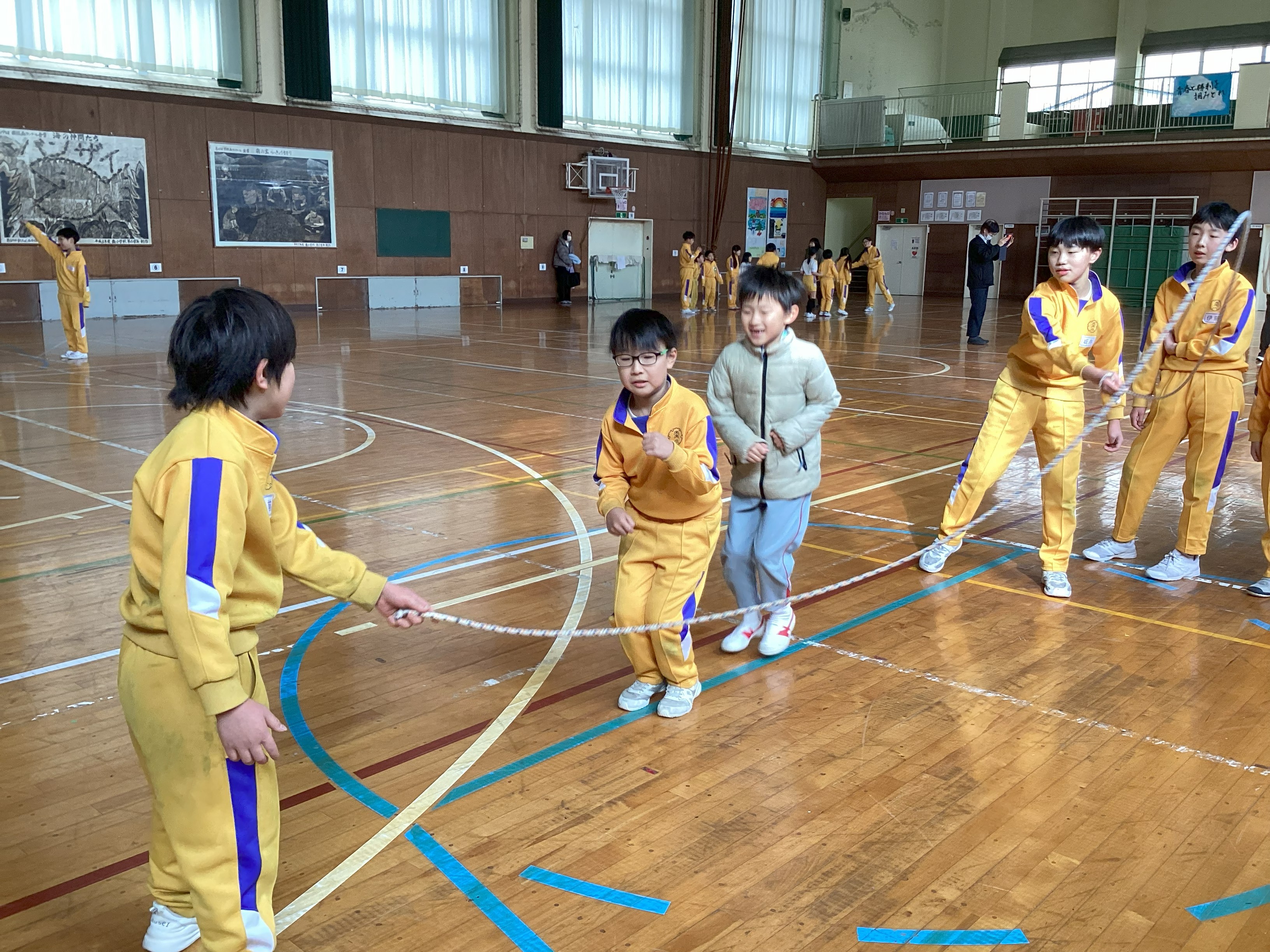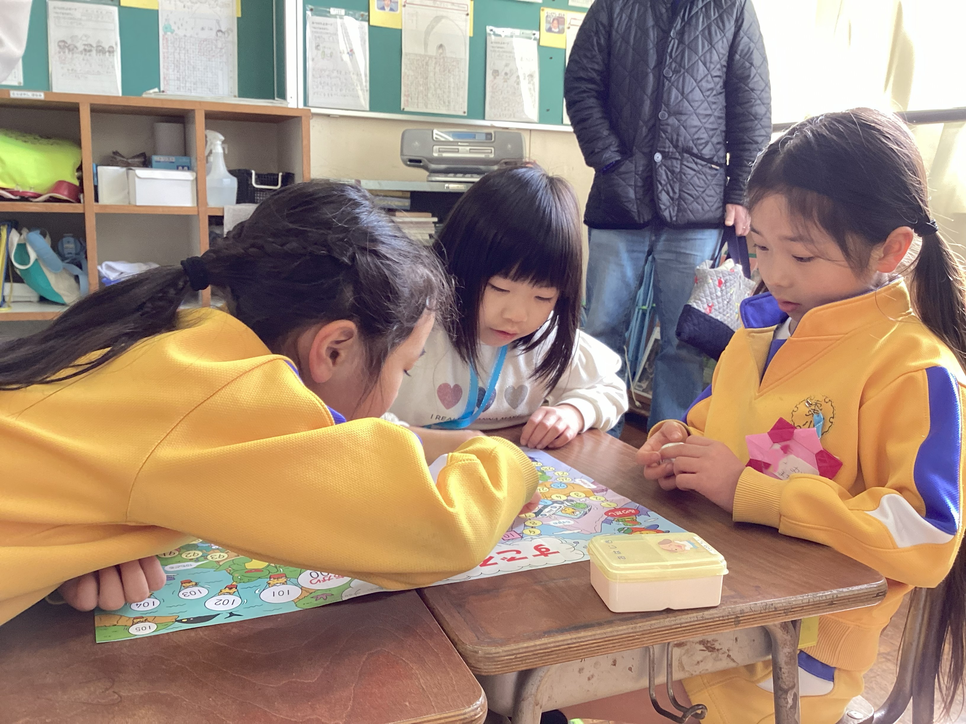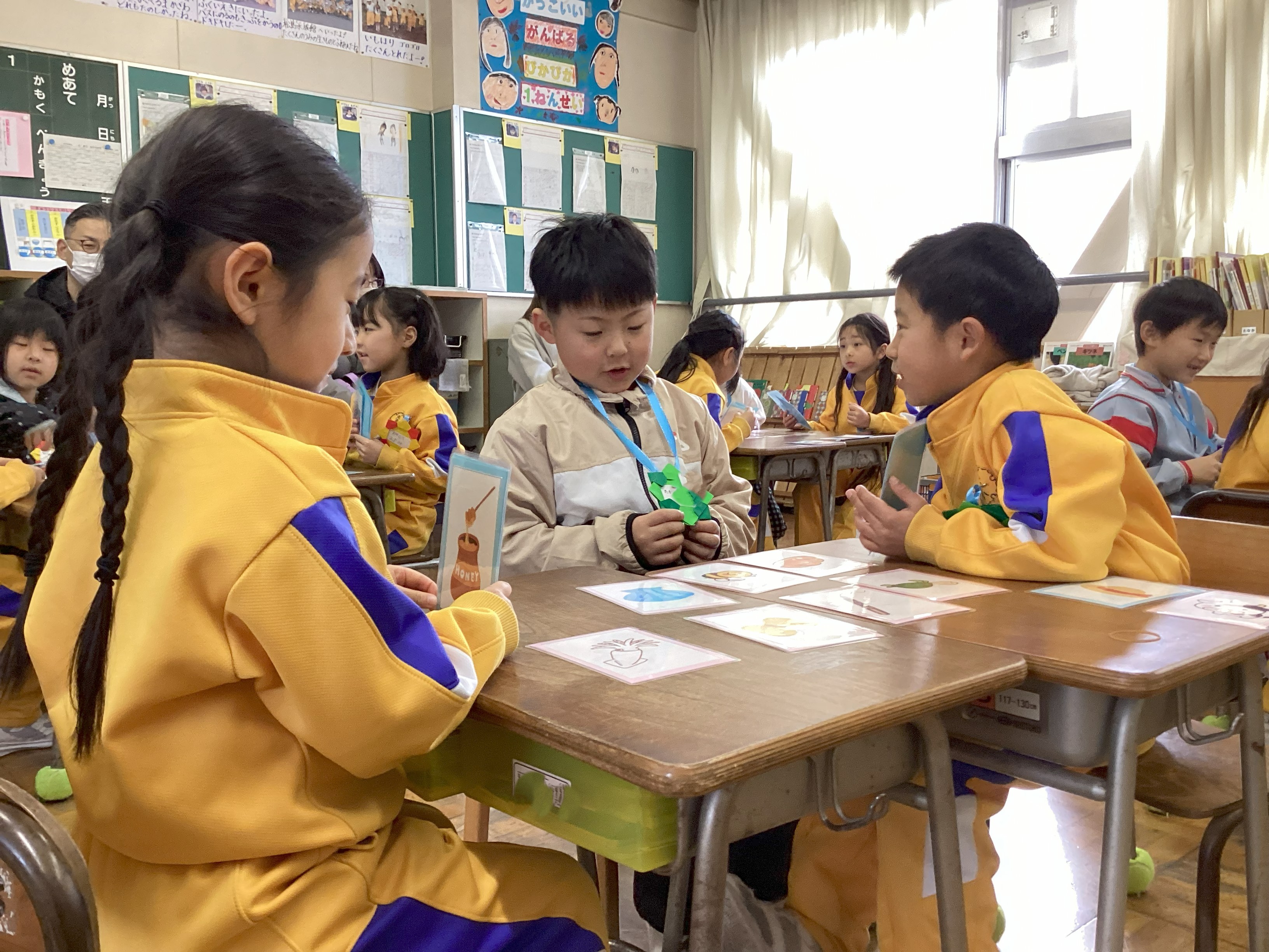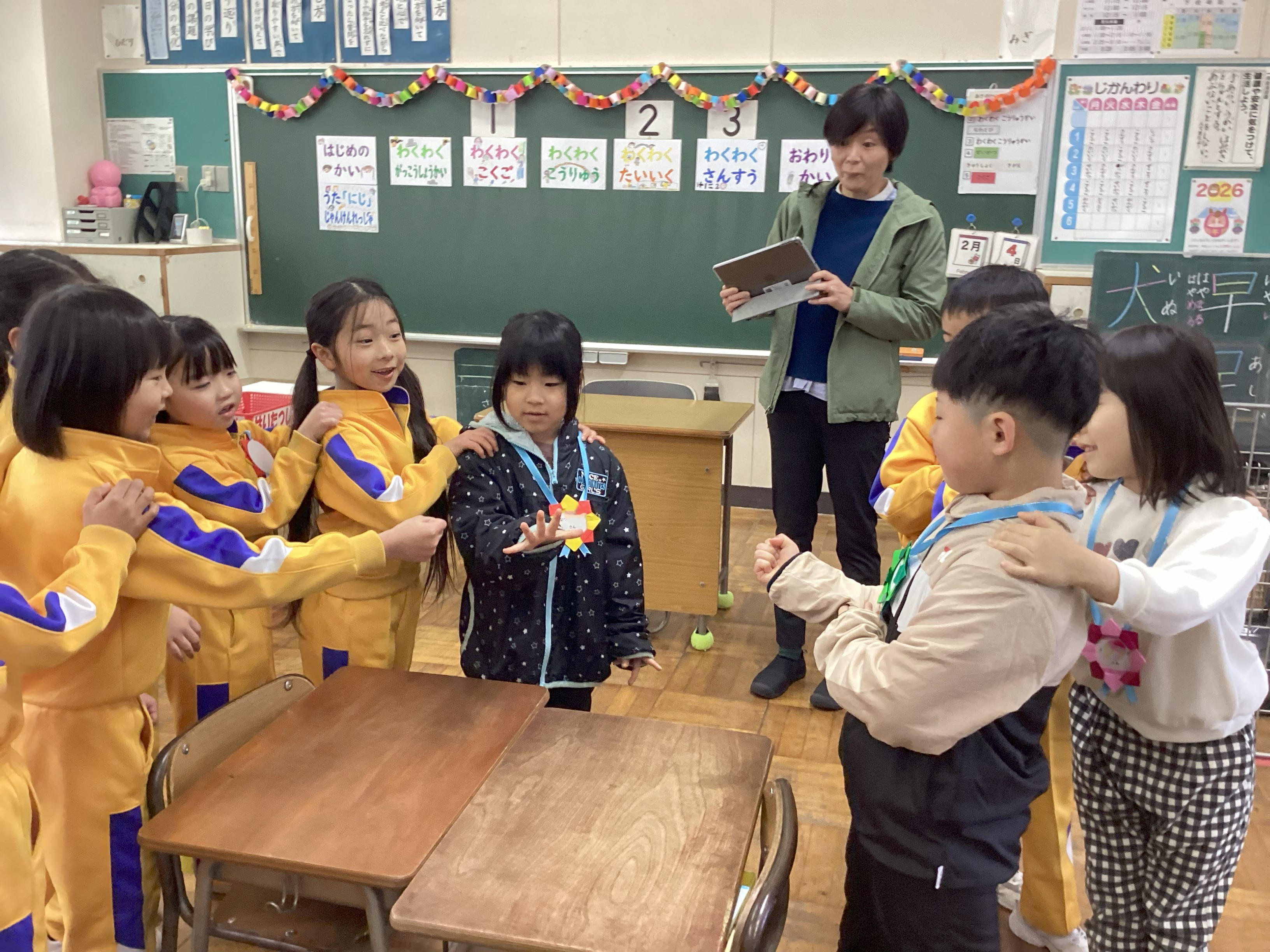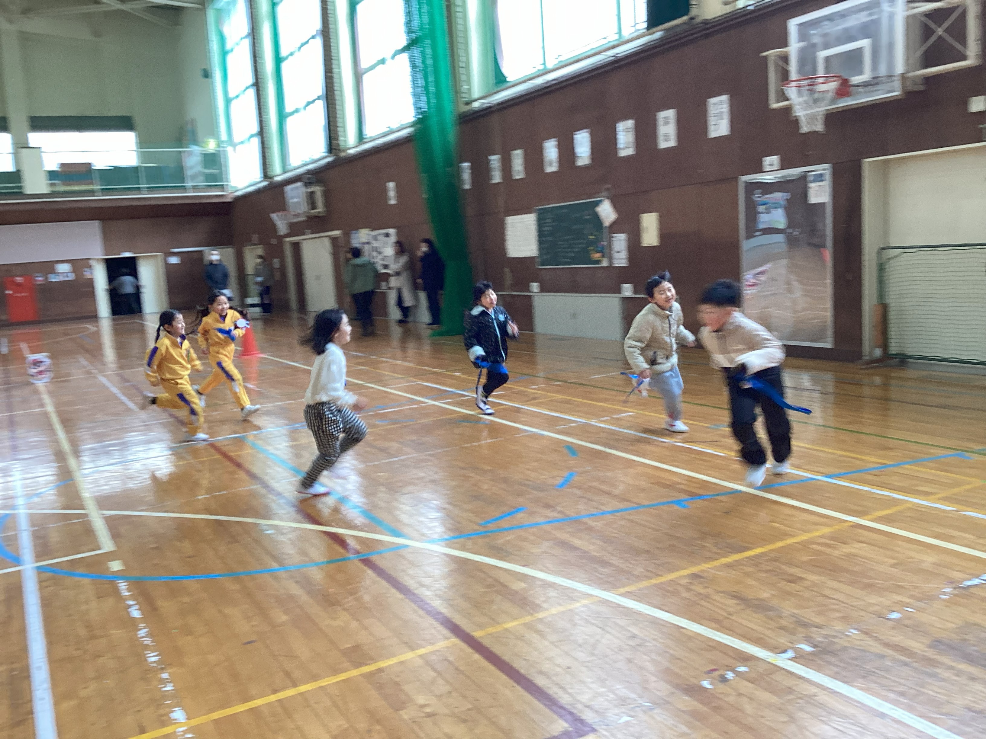 園児のみなさんと1年生で一緒に歌を歌ったり、言葉遊びやおにごっこをしたりしました。