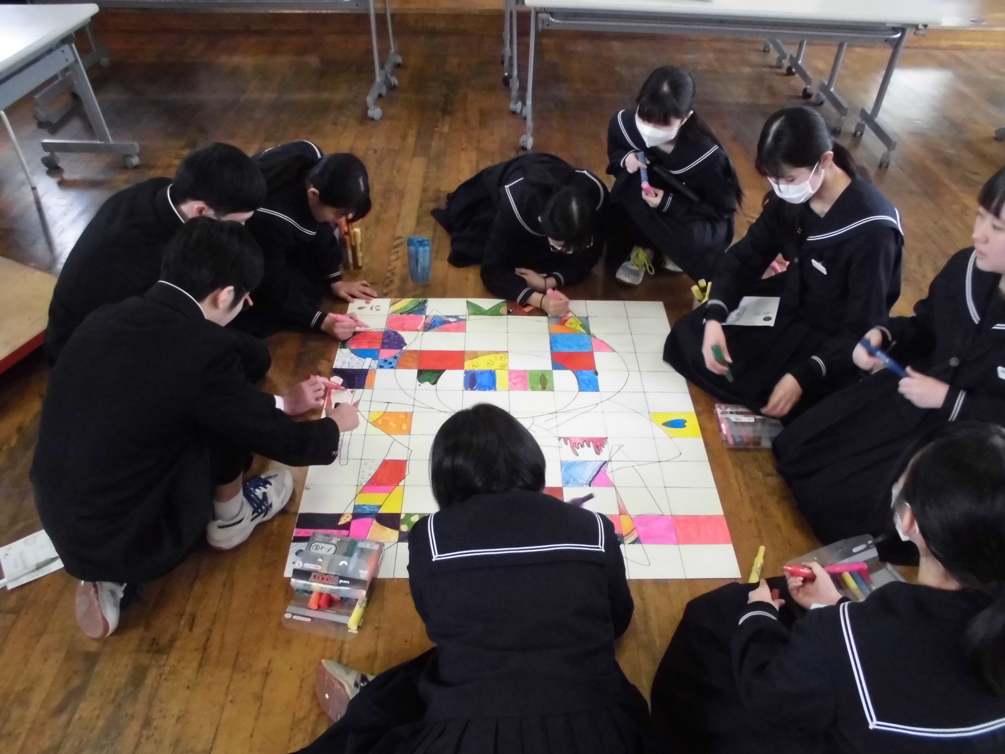 | 2年生は、立志式に向けての活動を行っています。 自分を見つめ、色紙に漢字一文字を書いて周りを飾り、当日展示する予定です。 どんな文字が並ぶか、とても楽しみです。 [画像:IMG_1 |