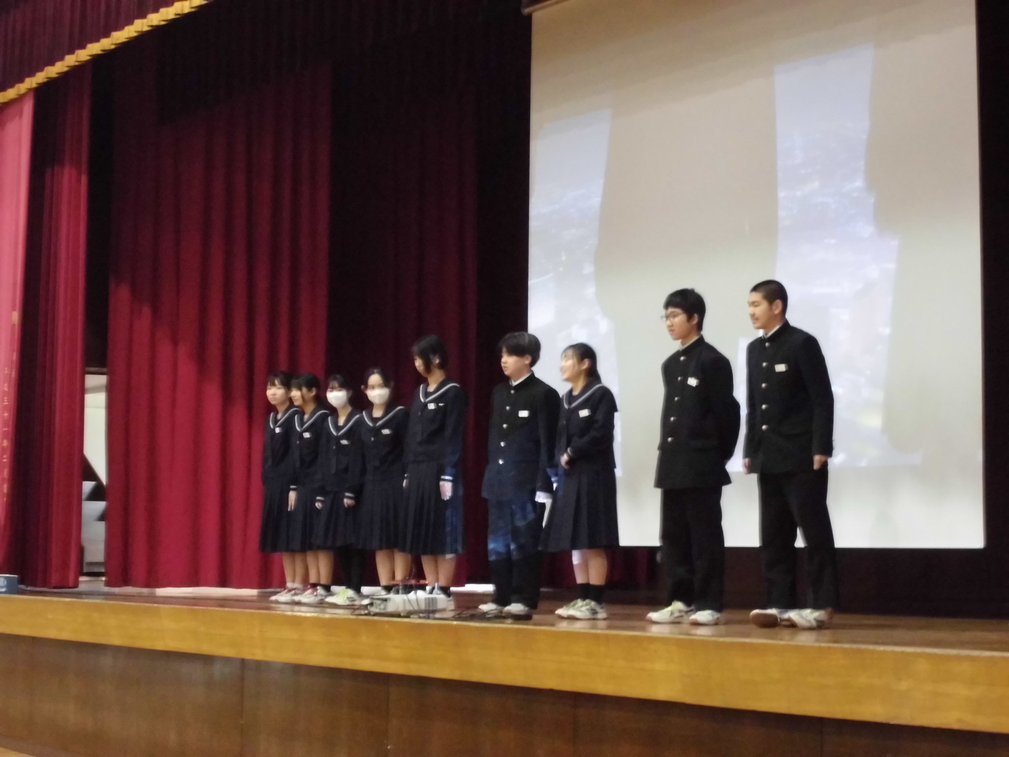 | 2年生は、立志式に向けて、学年発表、クラス発表の流れを練習しています。 木曜の6限には、合唱の全体合唱に取り組みました。全員の力が一つになり、仕上がりに近づいてきてい |