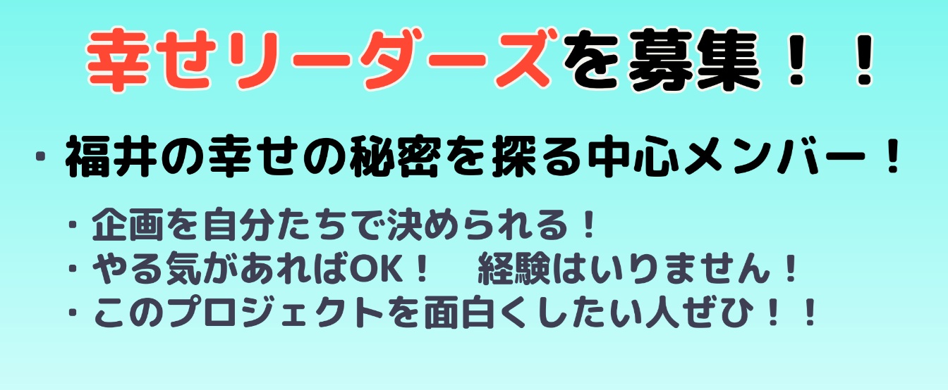 まずは、福井県の幸福度No.1の理由を解明することを通して、福井のことをよく知っていくことになります。