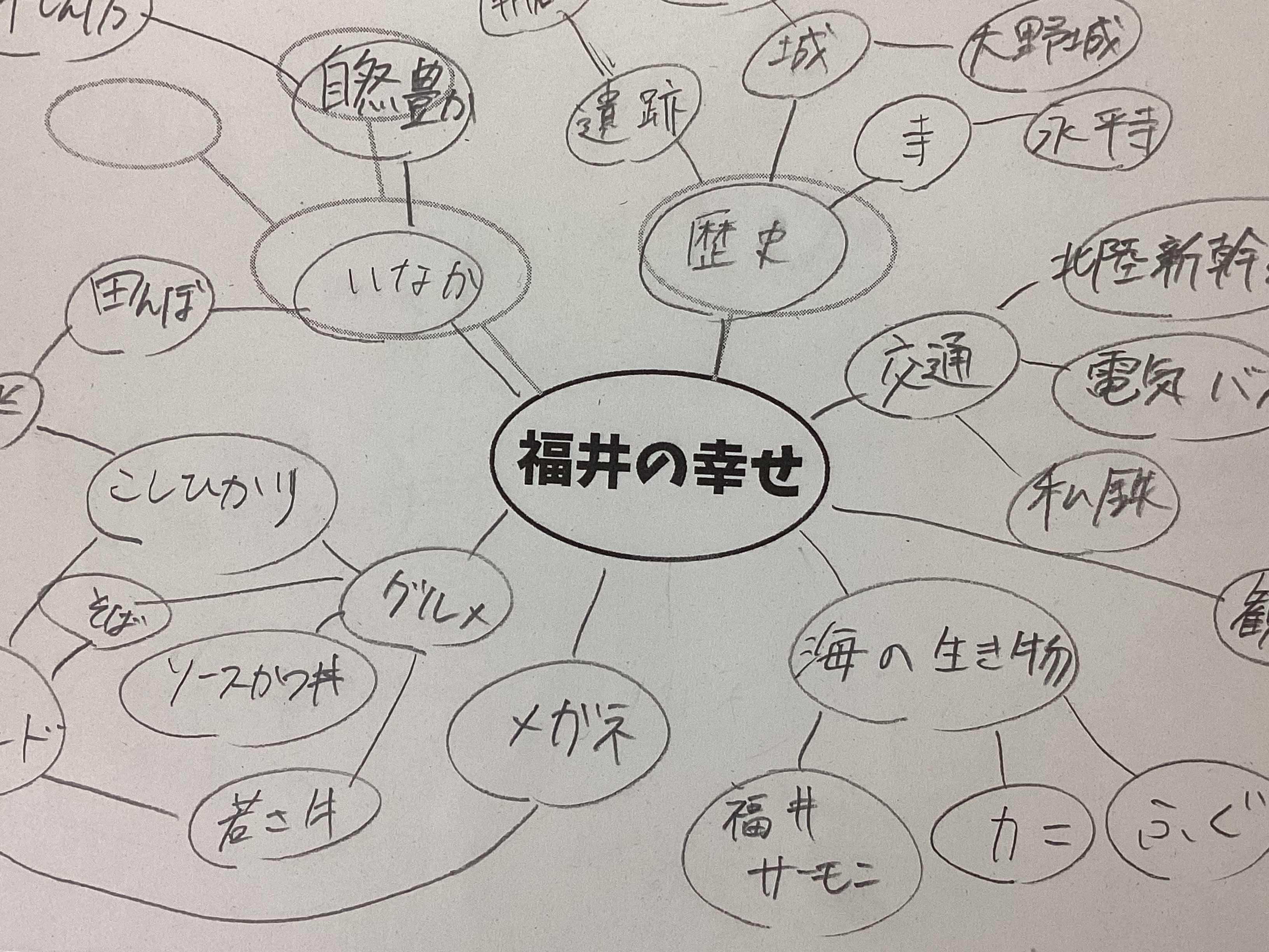 個人で、福井の幸せを支えているものについて考えを広げてみました。