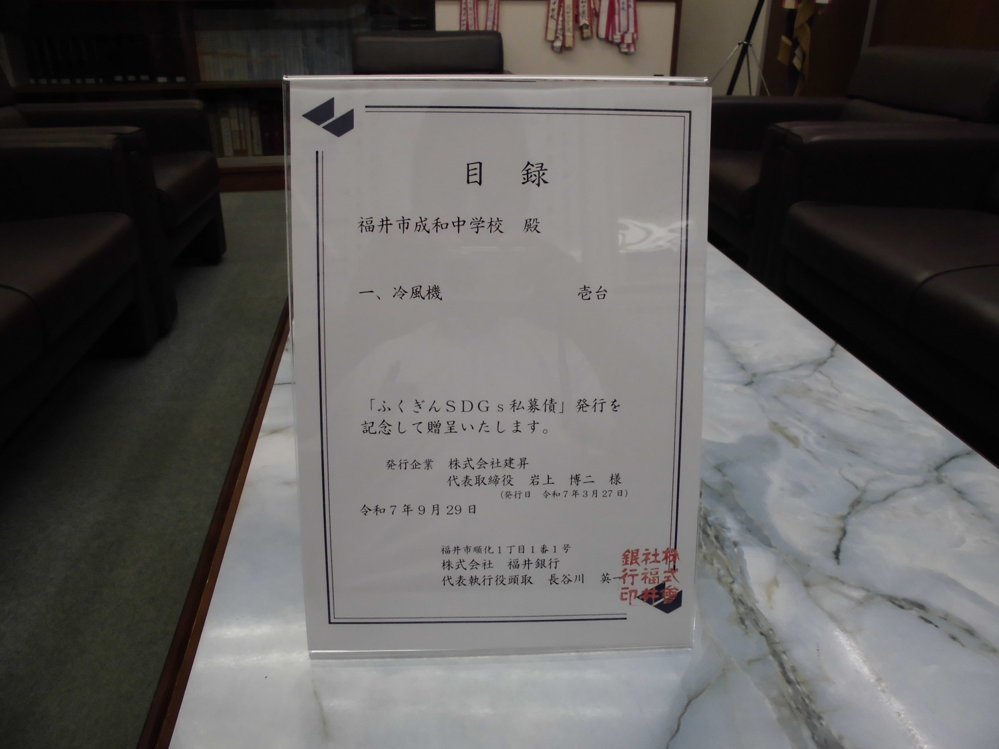 株式会社建昇様が、福井銀行の「ふくぎんSDGs私募債」を発行し、