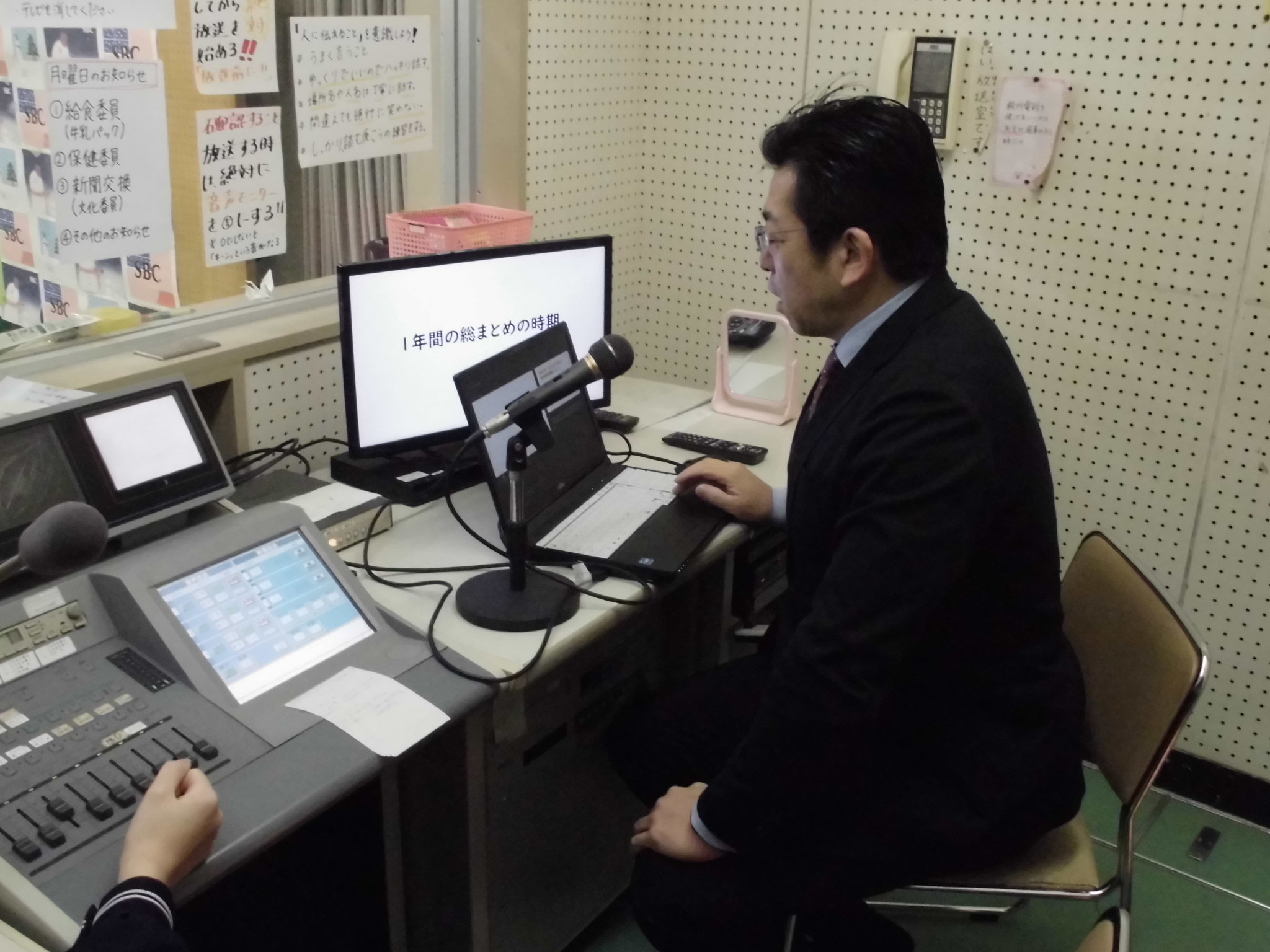 放送室からリモートで全校集会を行いました。