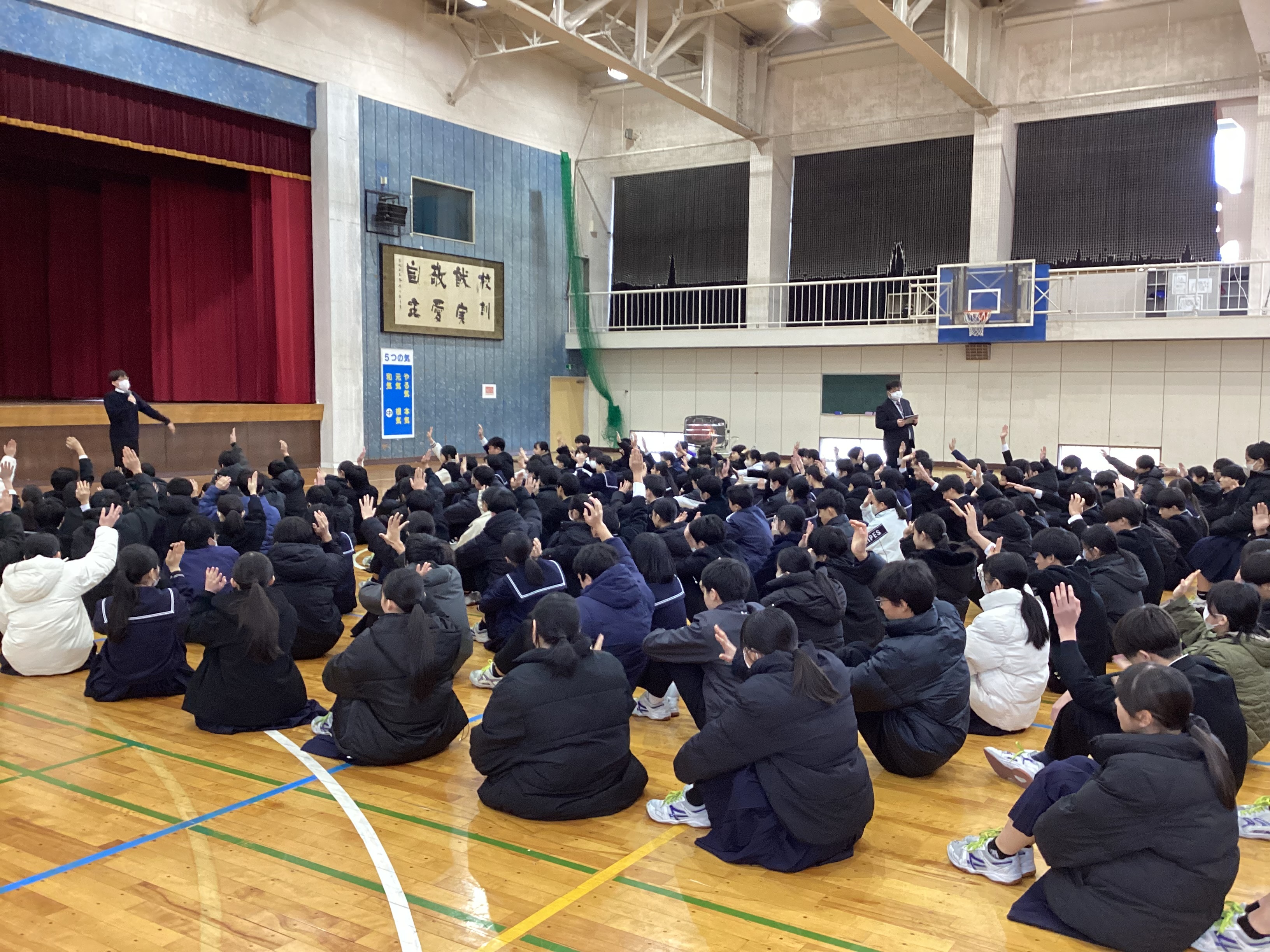 今日、4限目に、体育館で学年集会を行いました。