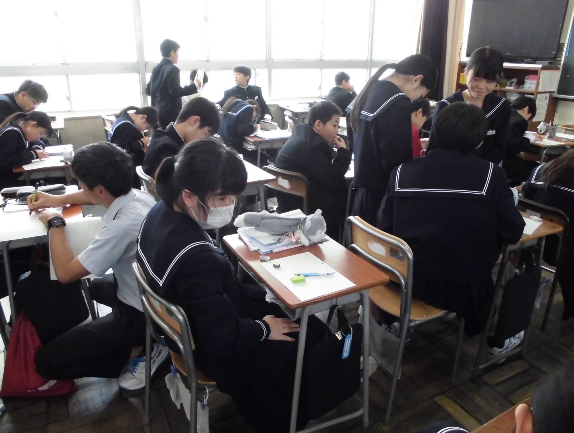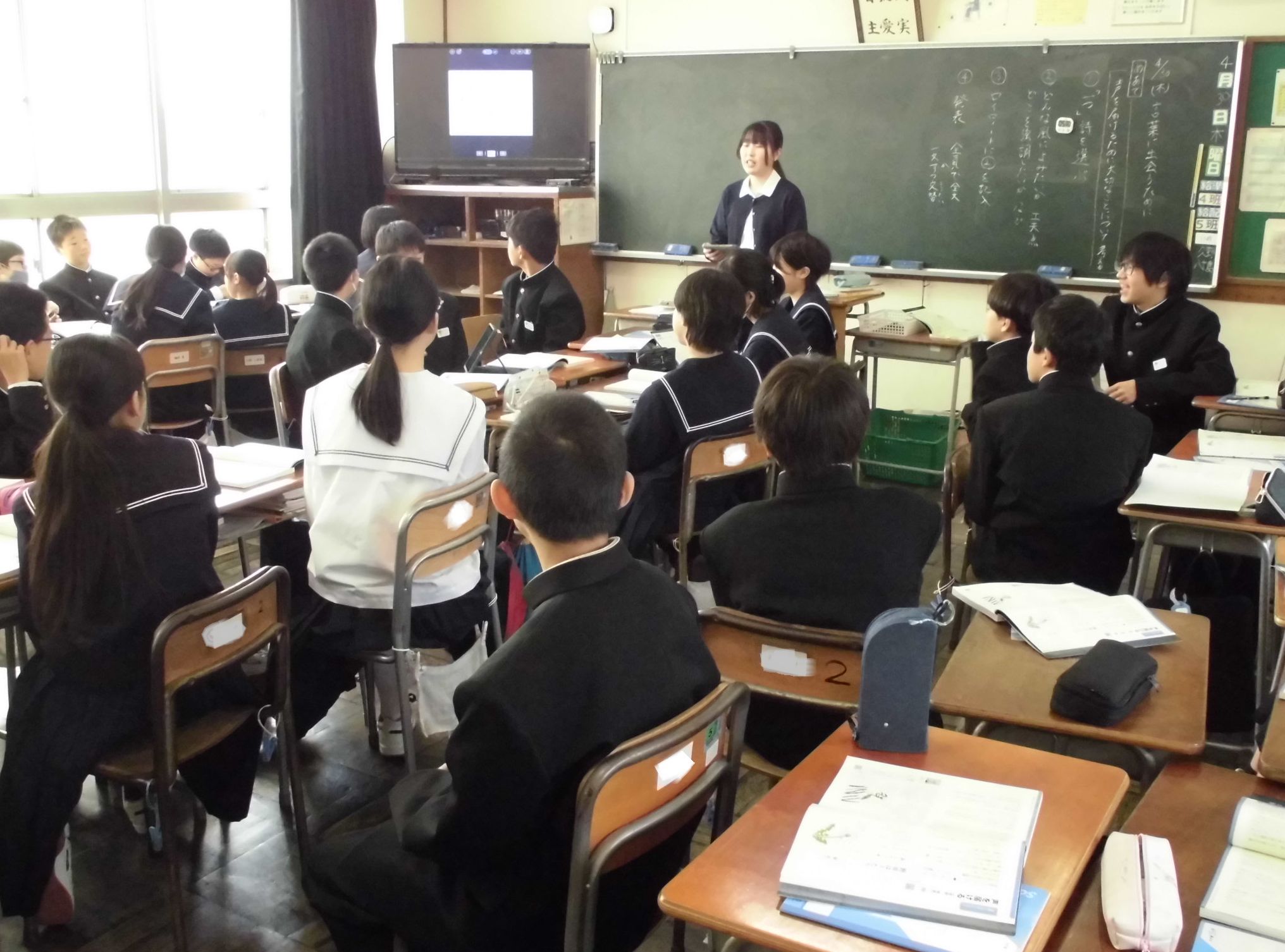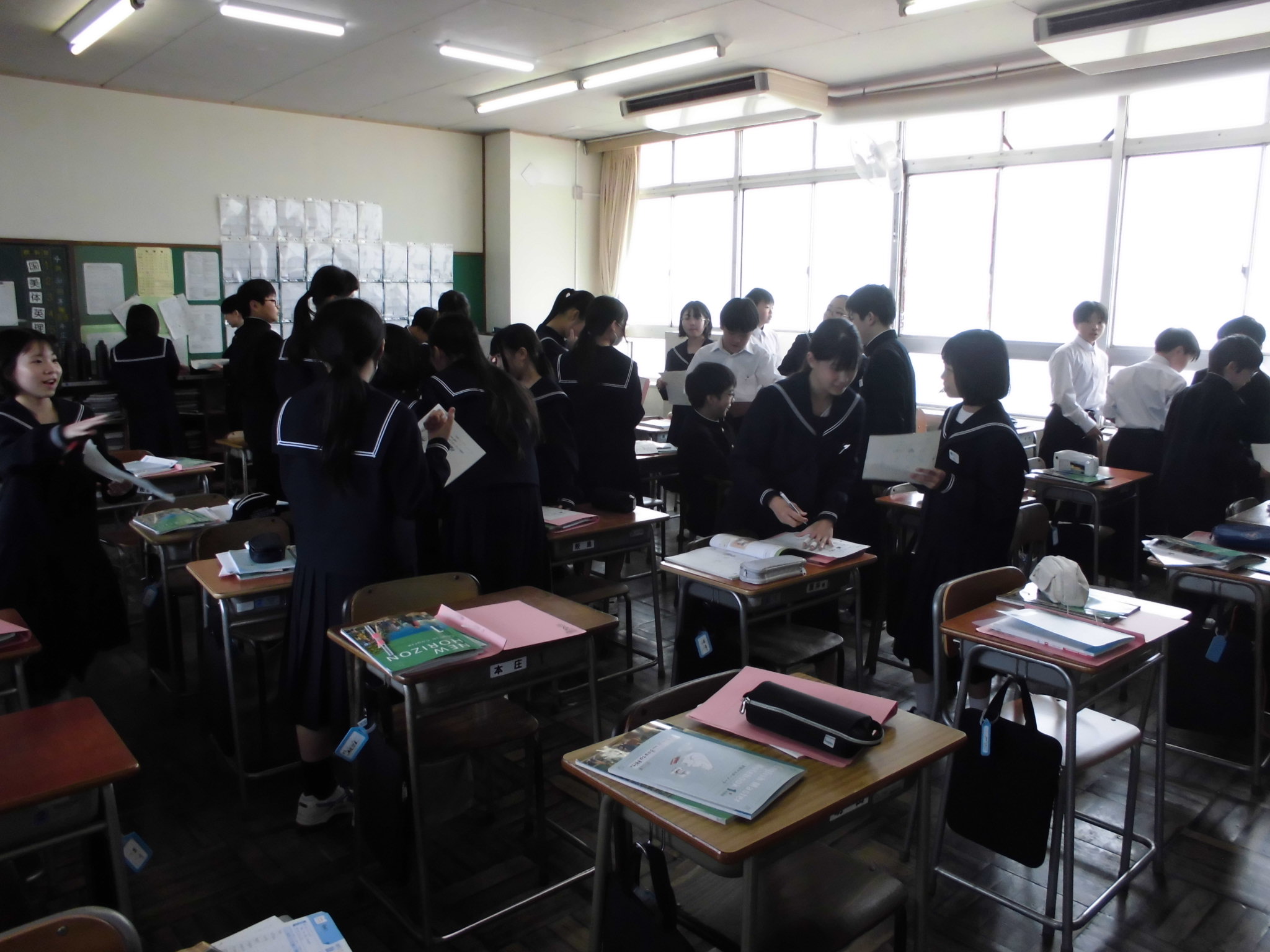 1年生の各教室では、教科担任制の授業にも慣れ、活発に活動する姿が見られました。