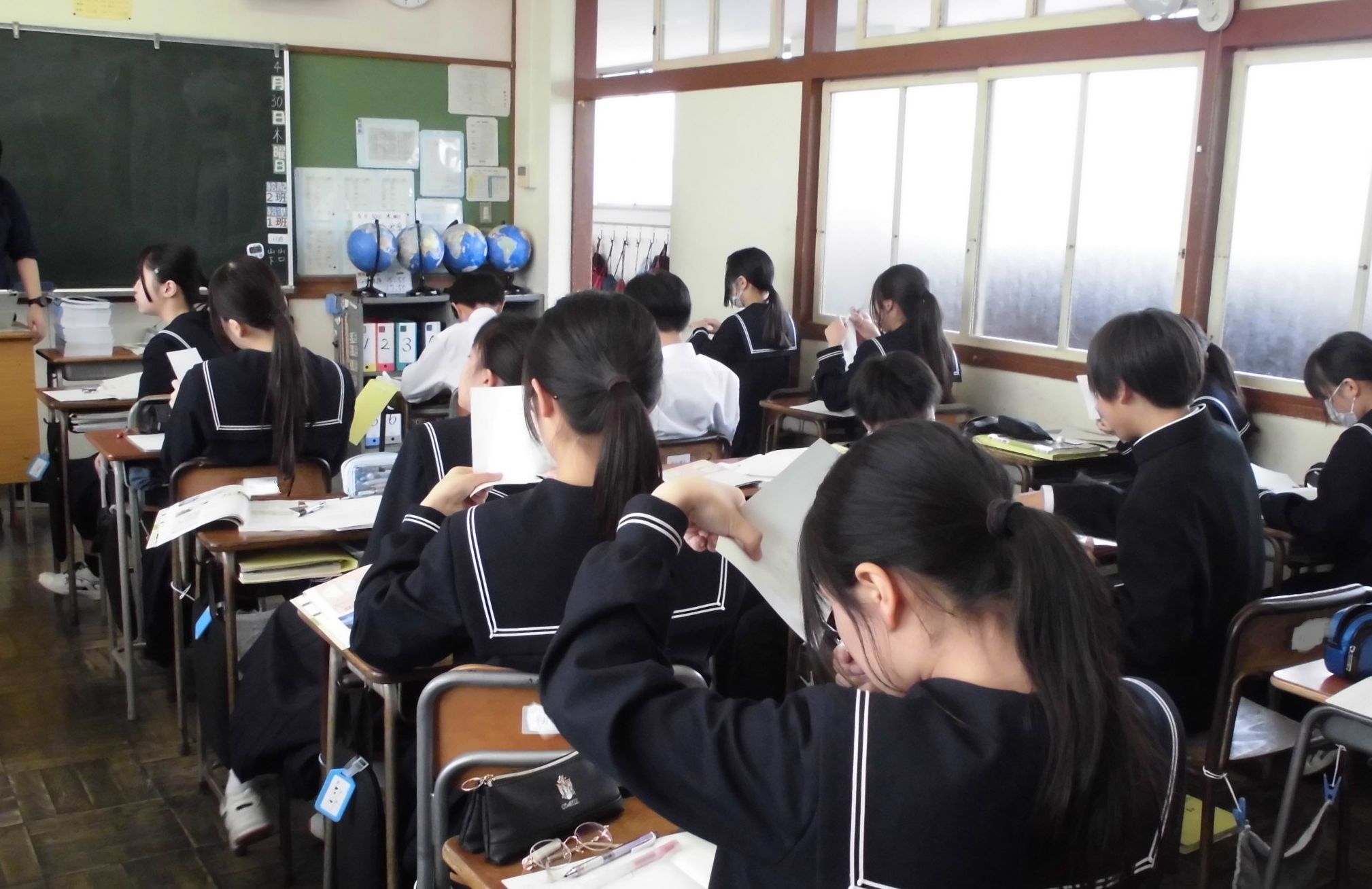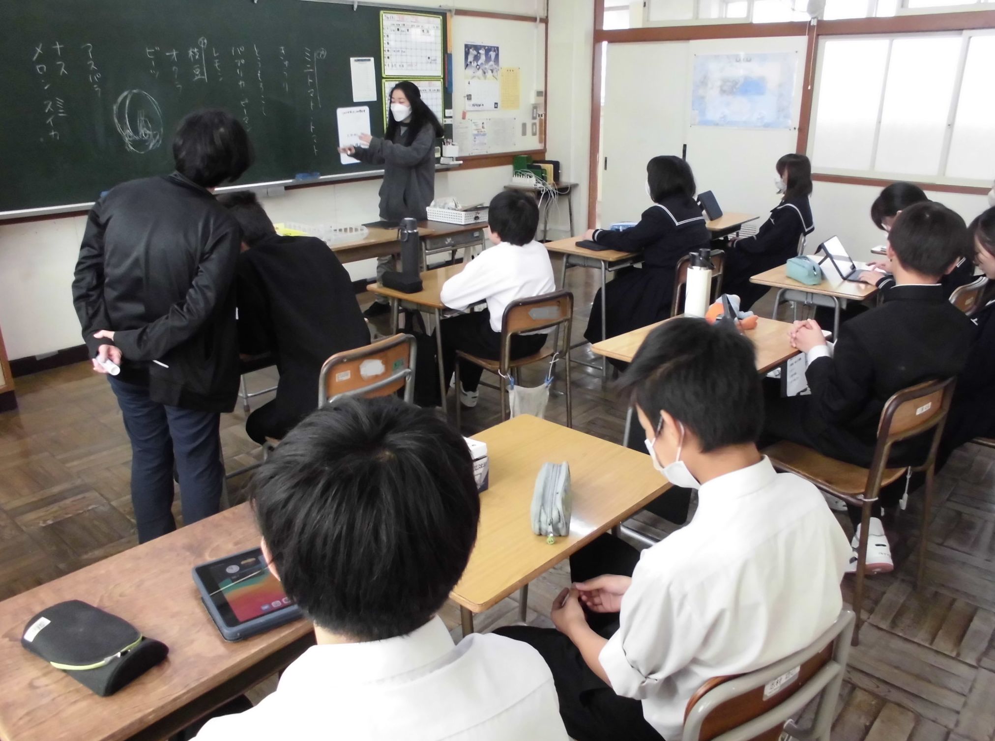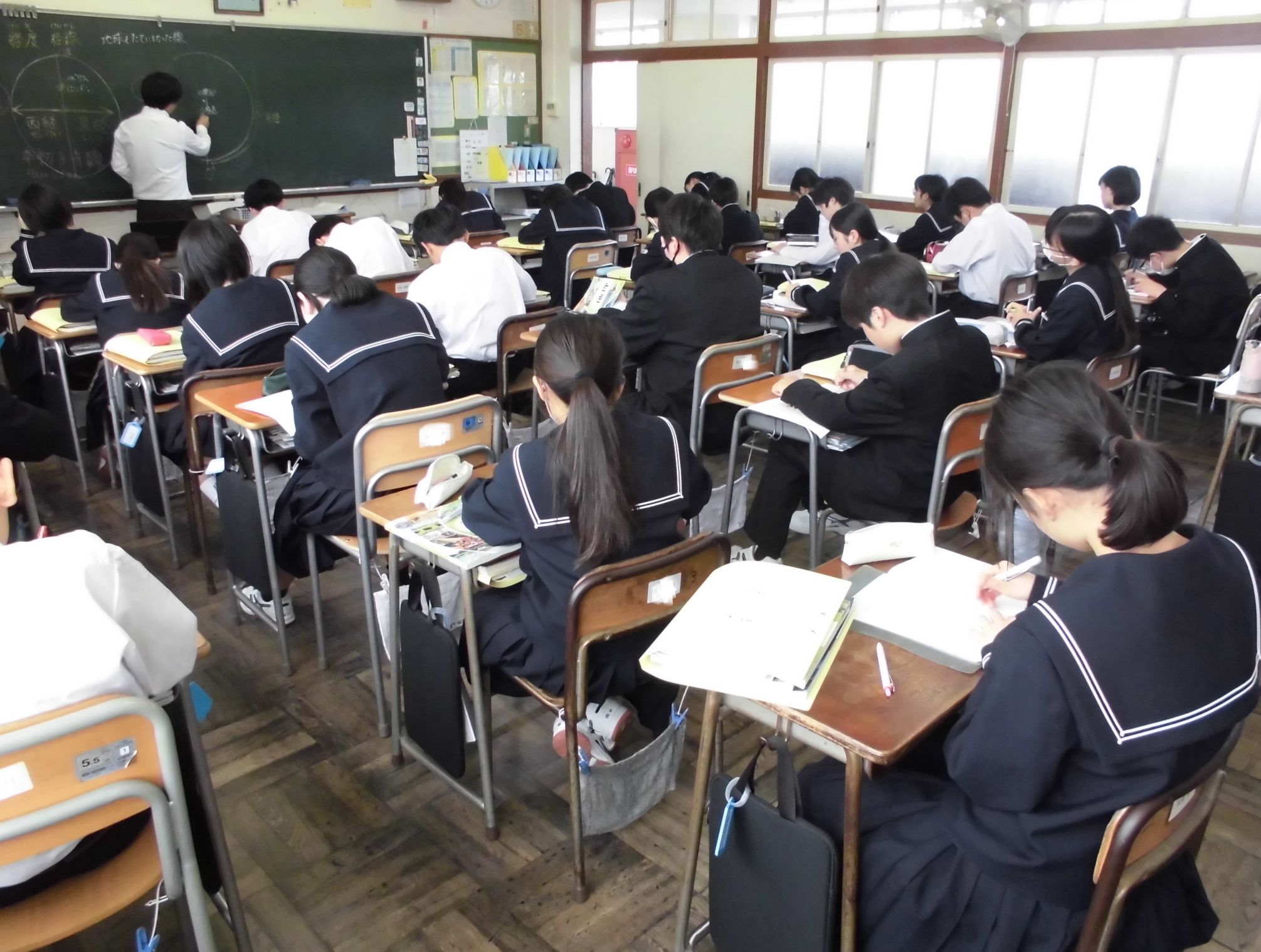 1年生の各教室では、教科担任制の授業にも慣れ、活発に活動する姿が見られました。
