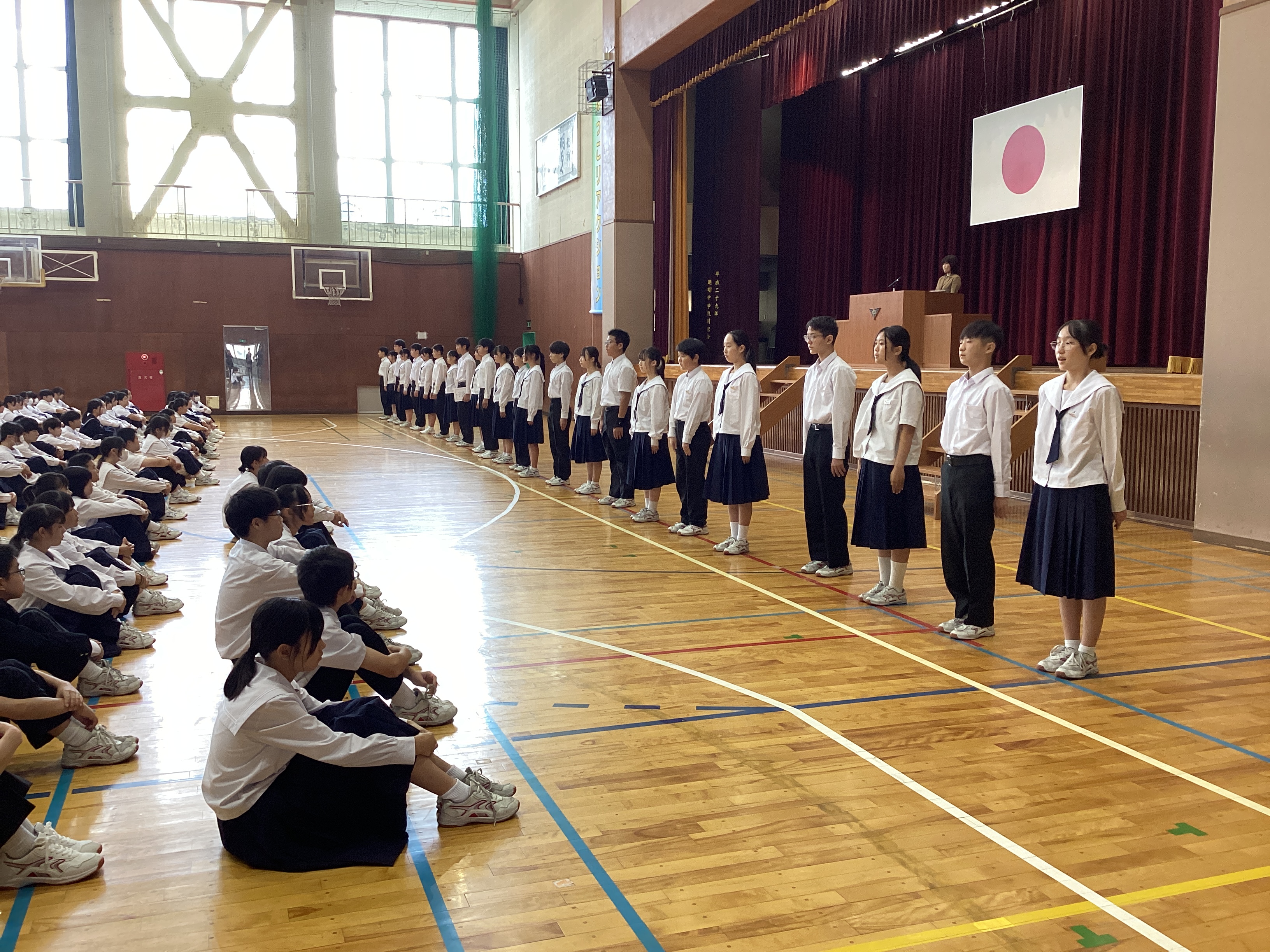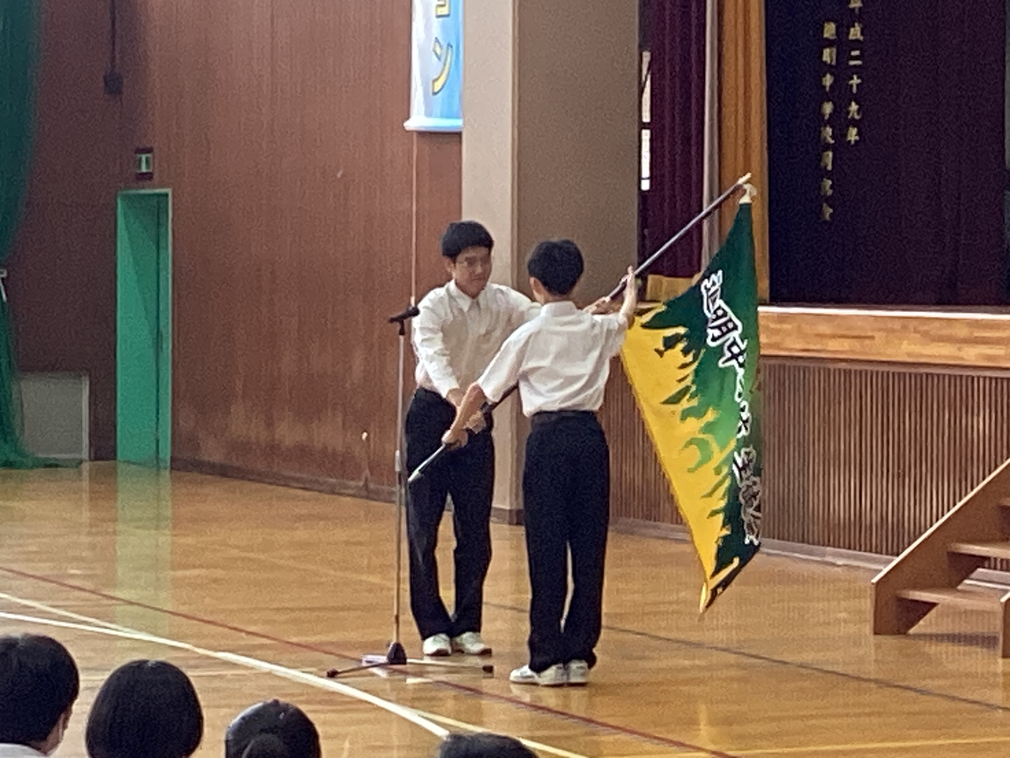 生徒会も新しい役員が認証され、1学期生徒会長から生徒会旗が引き継がれました。
